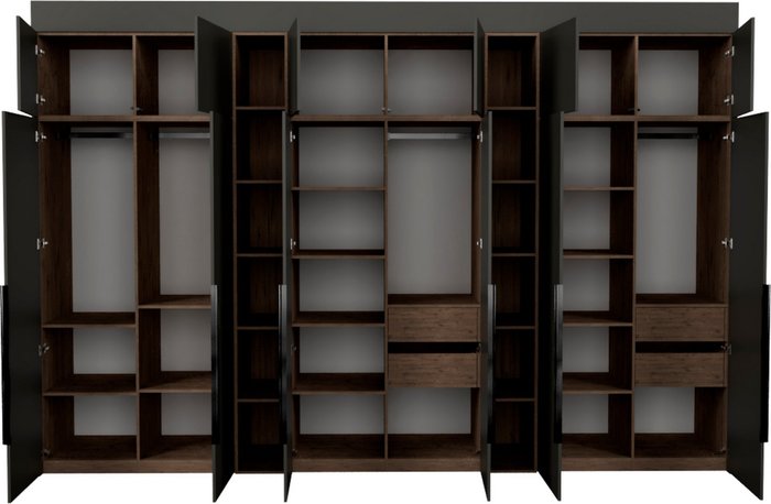 ✅Ключевые характеристикиШкаф представляет собой готовую к установке модульную конструкцию с распашными дверцами и вместительным внутренним наполнением; включающим ящики; полки и штангу. Высота изделия регулируется с помощью доборных элементов в диапазоне от 2450 до 2740 мм; что позволяет адаптировать шкаф под разные помещения. Материалы корпуса и фасадов выполнены из ЛДСП класса Е0.5 с качественной кромкой ПВХ; обеспечивая долговечность и экологичность.✅Преимущества и отличияМодель оснащена фурнитурой известных брендов Blum и Hafele с доводчиками и механизмами Tip-On для плавного и бесшумного закрывания дверей и ящиков. Регулируемые металлические опоры компенсируют неровности пола; а специальные крепления защищают шкаф от опрокидывания; что повышает безопасность эксплуатации. Фасады доходят до пола; создавая цельный и современный внешний вид без видимого цоколя.✅ПрактичностьШкаф легко собирается даже в узких помещениях и подходит для установки в нишу; угол или вдоль стены. Двухстороннее исполнение расширяет возможности размещения. Направляющие скрытого монтажа с доводчиками обеспечивают удобство и долговечность использования. Отсутствие подсветки компенсируется продуманной внутренней организацией для хранения общего назначения.✅УникальностьДанная модель выделяется сочетанием модульной конструкции с возможностью регулировки высоты и использованием сертифицированных материалов высокого качества. Инновационные механизмы открытия при нажатии и доводчики обеспечивают комфорт и современный уровень функциональности; что делает шкаф надежным и удобным решением для различных жилых и рабочих пространств.✅Ключевые характеристикиШкаф представляет собой готовую к установке модульную конструкцию с распашными дверцами и вместительным внутренним наполнением; включающим ящики; полки и штангу. Высота изделия регулируется с помощью доборных элементов в диапазоне от 2450 до 2740 мм; что позволяет адаптировать шкаф под разные помещения. Материалы корпуса и фасадов выполнены из ЛДСП класса Е0.5 с качественной кромкой ПВХ; обеспечивая долговечность и экологичность.✅Преимущества и отличияМодель оснащена фурнитурой известных брендов Blum и Hafele с доводчиками и механизмами Tip-On для плавного и бесшумного закрывания дверей и ящиков. Регулируемые металлические опоры компенсируют неровности пола; а специальные крепления защищают шкаф от опрокидывания; что повышает безопасность эксплуатации. Фасады доходят до пола; создавая цельный и современный внешний вид без видимого цоколя.✅ПрактичностьШкаф легко собирается даже в узких помещениях и подходит для установки в нишу; угол или вдоль стены. Двухстороннее исполнение расширяет возможности размещения. Направляющие скрытого монтажа с доводчиками обеспечивают удобство и долговечность использования. Отсутствие подсветки компенсируется продуманной внутренней организацией для хранения общего назначения.✅УникальностьДанная модель выделяется сочетанием модульной конструкции с возможностью регулировки высоты и использованием сертифицированных материалов высокого качества. Инновационные механизмы открытия при нажатии и доводчики обеспечивают комфорт и современный уровень функциональности; что делает шкаф надежным и удобным решением для различных жилых и рабочих прост