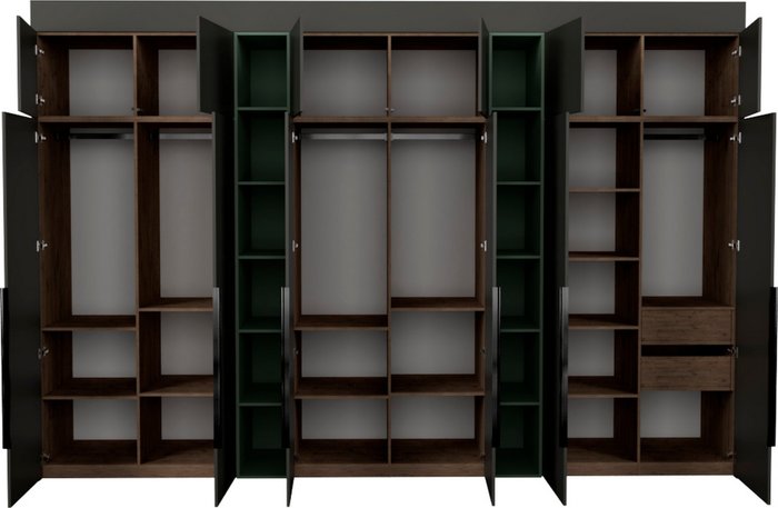 ✅Ключевые характеристикиШкаф представляет собой готовую к установке модульную конструкцию с распашными дверцами и вместительным внутренним наполнением; включающим ящики; полки и штангу. Высота изделия регулируется с помощью доборных элементов в диапазоне от 2450 до 2740 мм; что позволяет адаптировать шкаф под разные помещения. Материалы корпуса и фасадов выполнены из ЛДСП класса е0.5 с качественной кромкой из ПВХ; обеспечивая долговечность и экологичность.✅Преимущества и отличияИспользование фурнитуры известных брендов Blum и Hafele с доводчиками и tip-on механизмами гарантирует плавное и бесшумное открывание дверей и ящиков. Металлические регулируемые опоры компенсируют неровности пола; а специальные крепления защищают шкаф от опрокидывания; что повышает безопасность эксплуатации. Фасады выполнены до пола без видимого цоколя; что придаёт изделию современный и аккуратный внешний вид.✅ПрактичностьШкаф подходит для различных помещений: детской; жилой комнаты; столовой; прихожей; спальни и офиса; благодаря универсальному дизайну и функциональному наполнению. Модульная конструкция облегчает сборку даже в узких пространствах; а скрытые направляющие с доводчиками обеспечивают удобство и долговечность использования. Наличие антресоли увеличивает полезное пространство для хранения.✅УникальностьДвухстороннее исполнение позволяет использовать шкаф в нишах; углах или вдоль стены; что расширяет возможности размещения. Сертифицированное качество материалов и продуманная конструкция с регулируемой высотой делают изделие надежным и удобным решением для хранения общего назначения в любых интерьерах.✅Ключевые характеристикиШкаф представляет собой готовую к установке модульную конструкцию с распашными дверцами и вместительным внутренним наполнением; включающим ящики; полки и штангу. Высота изделия регулируется с помощью доборных элементов в диапазоне от 2450 до 2740 мм; что позволяет адаптировать шкаф под разные помещения. Материалы корпуса и фасадов выполнены из ЛДСП класса е0.5 с качественной кромкой из ПВХ; обеспечивая долговечность и экологичность.✅Преимущества и отличияИспользование фурнитуры известных брендов Blum и Hafele с доводчиками и tip-on механизмами гарантирует плавное и бесшумное открывание дверей и ящиков. Металлические регулируемые опоры компенсируют неровности пола; а специальные крепления защищают шкаф от опрокидывания; что повышает безопасность эксплуатации. Фасады выполнены до пола без видимого цоколя; что придаёт изделию современный и аккуратный внешний вид.✅ПрактичностьШкаф подходит для различных помещений: детской; жилой комнаты; столовой; прихожей; спальни и офиса; благодаря универсальному дизайну и функциональному наполнению. Модульная конструкция облегчает сборку даже в узких пространствах; а скрытые направляющие с доводчиками обеспечивают удобство и долговечность использования. Наличие антресоли увеличивает полезное пространство для хранения.✅УникальностьДвухстороннее исполнение позволяет использовать шкаф в нишах; углах или вдоль стены; что расширяет возможности размещения. Сертифицированное качество материалов и продуманная конструкция с регулируемой высотой делают изделие надежным и удобным решением для хранения общего назначения в любых интерьерах.