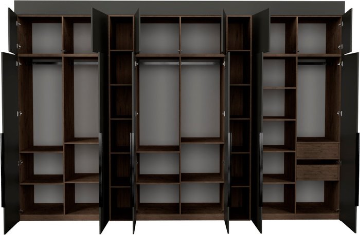 ✅Ключевые характеристикиШкаф распашной предназначен для хранения общего назначения и подходит для различных помещений: детской; жилой комнаты; столовой; прихожей; спальни и офиса. Модель имеет модульную конструкцию из ЛДСП класса Е0,5 с сертифицированным качеством ЕАЭС; что гарантирует экологичность и безопасность. Высота регулируется с помощью доборных элементов в диапазоне от 2450 до 2740 мм; что позволяет адаптировать шкаф под разные условия помещения.✅Преимущества и отличияФурнитура Blum и Hafele с доводчиками и TipOn-механизмами обеспечивает плавное и бесшумное закрывание дверей. Регулируемые металлические опоры компенсируют неровности пола; а крепления защищают шкаф от опрокидывания; что повышает безопасность эксплуатации. Фасады выполнены до пола без видимого цоколя; что придаёт изделию современный и аккуратный внешний вид.✅ПрактичностьШкаф легко собирается даже в узких помещениях и может устанавливаться в нишу; угол или вдоль стены. Внутреннее наполнение включает ящики; полки и штангу; что обеспечивает удобное хранение различных вещей. Направляющие скрытого монтажа с доводчиками повышают комфорт использования и долговечность конструкции.✅УникальностьДвухстороннее исполнение шкафа расширяет возможности его размещения в помещении. Использование ЛДСП с кромкой ПВХ и качественной фурнитуры делает изделие надёжным и долговечным. Модель отличается большим количеством дверей - двенадцать; что позволяет организовать пространство максимально функционально и удобно.✅Ключевые характеристикиШкаф распашной предназначен для хранения общего назначения и подходит для различных помещений: детской; жилой комнаты; столовой; прихожей; спальни и офиса. Модель имеет модульную конструкцию из ЛДСП класса Е0,5 с сертифицированным качеством ЕАЭС; что гарантирует экологичность и безопасность. Высота регулируется с помощью доборных элементов в диапазоне от 2450 до 2740 мм; что позволяет адаптировать шкаф под разные условия помещения.✅Преимущества и отличияФурнитура Blum и Hafele с доводчиками и TipOn-механизмами обеспечивает плавное и бесшумное закрывание дверей. Регулируемые металлические опоры компенсируют неровности пола; а крепления защищают шкаф от опрокидывания; что повышает безопасность эксплуатации. Фасады выполнены до пола без видимого цоколя; что придаёт изделию современный и аккуратный внешний вид.✅ПрактичностьШкаф легко собирается даже в узких помещениях и может устанавливаться в нишу; угол или вдоль стены. Внутреннее наполнение включает ящики; полки и штангу; что обеспечивает удобное хранение различных вещей. Направляющие скрытого монтажа с доводчиками повышают комфорт использования и долговечность конструкции.✅УникальностьДвухстороннее исполнение шкафа расширяет возможности его размещения в помещении. Использование ЛДСП с кромкой ПВХ и качественной фурнитуры делает изделие надёжным и долговечным. Модель отличается большим количеством дверей - двенадцать; что позволяет организовать пространство максимально функционально и удобно.