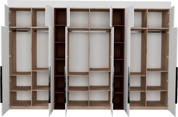 ✅Ключевые характеристикиШкаф представляет собой готовую к установке модульную конструкцию с распашными дверцами; предназначенную для хранения общего назначения в различных помещениях: детской; жилой комнате; столовой; прихожей; спальне и офисе. Высота изделия регулируется с помощью дополнительных элементов в диапазоне от 2450 до 2740 мм; что позволяет адаптировать шкаф под разные условия. Общие габариты составляют 387.2 см в ширину; обеспечивающими плавное и бесшумное закрывание дверей. Металлические регулируемые опоры компенсируют неровности пола; а крепления защищают шкаф от опрокидывания; что повышает безопасность эксплуатации. Использование фурнитуры известных брендов Blum и Hafele гарантирует надежность и долговечность.✅ПрактичностьШкаф оснащён антресолью; полками и штангой для удобного размещения одежды и других предметов. Направляющие скрытого монтажа с доводчиками обеспечивают комфортное открывание и закрывание дверей. Форма поставки в разобранном виде облегчает транспортировку и сборку даже в узких помещениях. Отсутствие видимого цоколя и фасады до пола создают современный и аккуратный внешний вид.✅УникальностьДвухстороннее исполнение позволяет использовать шкаф с разных сторон; что расширяет возможности его размещения в интерьере. Сертифицированное качество ЛДСП по стандартам ЕАЭС и сочетание материалов с декоративной фурнитурой в цвете античная латунь придают изделию стильный и презентабельный вид; выделяя его среди типичных решений.✅Ключевые характеристикиШкаф представляет собой готовую к установке модульную конструкцию с распашными дверцами; предназначенную для хранения общего назначения в различных помещениях: детской; жилой комнате; столовой; прихожей; спальне и офисе. Высота изделия регулируется с помощью дополнительных элементов в диапазоне от 2450 до 2740 мм; что позволяет адаптировать шкаф под разные условия. Общие габариты составляют 387.2 см в ширину; обеспечивающими плавное и бесшумное закрывание дверей. Металлические регулируемые опоры компенсируют неровности пола; а крепления защищают шкаф от опрокидывания; что повышает безопасность эксплуатации. Использование фурнитуры известных брендов Blum и Hafele гарантирует надежность и долговечность.✅ПрактичностьШкаф оснащён антресолью; полками и штангой для удобного размещения одежды и других предметов. Направляющие скрытого монтажа с доводчиками обеспечивают комфортное открывание и закрывание дверей. Форма поставки в разобранном виде облегчает транспортировку и сборку даже в узких помещениях. Отсутствие видимого цоколя и фасады до пола создают современный и аккуратный внешний вид.✅УникальностьДвухстороннее исполнение позволяет использовать шкаф с разных сторон; что расширяет возможности его размещения в интерьере. Сертифицированное качество ЛДСП по стандартам ЕАЭС и сочетание материалов с декоративной фурнитурой в цвете античная латунь придают изделию стильный и презентабельный вид; выделяя его среди типичных решений.