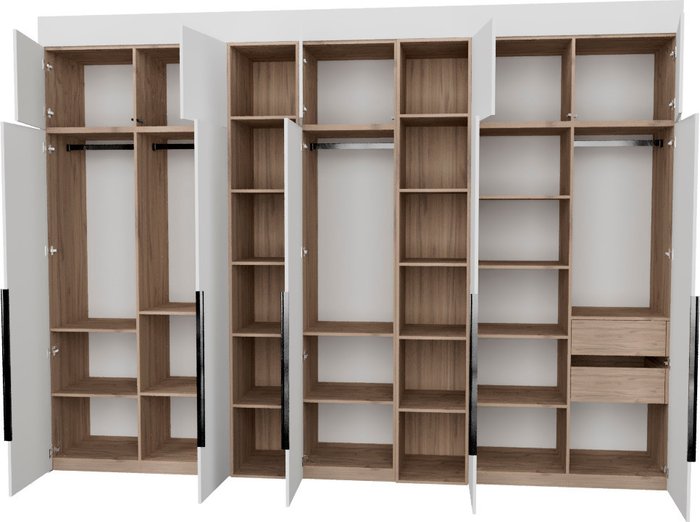 ✅Ключевые характеристикиШкаф представляет собой готовую к установке модульную конструкцию с распашными дверцами; предназначенную для хранения общего назначения в различных помещениях: детской; жилой комнате; столовой; прихожей; спальне и офисе. Высота изделия регулируется с помощью дополнительных элементов в диапазоне от 2450 до 2740 мм; что позволяет адаптировать шкаф под разные условия. Материалы корпуса и фасада выполнены из ЛДСП класса Е0,5 с качественной кромкой ПВХ; обеспечивающей долговечность и безопасность.✅Преимущества и отличияМодель оснащена фурнитурой Blum и Hafele с доводчиками и TipOn-механизмами; что гарантирует плавное и бесшумное закрывание дверей. Регулируемые металлические опоры компенсируют неровности пола; а специальные крепления защищают шкаф от опрокидывания; повышая безопасность эксплуатации. Фасады выполнены до пола без видимого цоколя; что придаёт изделию современный и аккуратный внешний вид.✅ПрактичностьВнутреннее наполнение включает ящики; полки и штангу; что обеспечивает удобное и функциональное хранение различных вещей. Направляющие скрытого монтажа с доводчиками повышают комфорт использования. Форма исполнения двухсторонняя; что расширяет возможности размещения в помещении. Шкаф поставляется в разобранном виде; что облегчает транспортировку и сборку даже в узких пространствах.✅УникальностьДанная модель выделяется сочетанием модульной конструкции с возможностью регулировки высоты и использованием высококачественной фурнитуры с современными механизмами TipOn. Сертифицированное качество материалов по стандартам ЕАЭС и класс ЛДСП Е0,5 обеспечивают экологичность и безопасность. Металлические регулируемые опоры и защита от опрокидывания делают шкаф надёжным и устойчивым решением для любого интерьера.✅Ключевые характеристикиШкаф представляет собой готовую к установке модульную конструкцию с распашными дверцами; предназначенную для хранения общего назначения в различных помещениях: детской; жилой комнате; столовой; прихожей; спальне и офисе. Высота изделия регулируется с помощью дополнительных элементов в диапазоне от 2450 до 2740 мм; что позволяет адаптировать шкаф под разные условия. Материалы корпуса и фасада выполнены из ЛДСП класса Е0,5 с качественной кромкой ПВХ; обеспечивающей долговечность и безопасность.✅Преимущества и отличияМодель оснащена фурнитурой Blum и Hafele с доводчиками и TipOn-механизмами; что гарантирует плавное и бесшумное закрывание дверей. Регулируемые металлические опоры компенсируют неровности пола; а специальные крепления защищают шкаф от опрокидывания; повышая безопасность эксплуатации. Фасады выполнены до пола без видимого цоколя; что придаёт изделию современный и аккуратный внешний вид.✅ПрактичностьВнутреннее наполнение включает ящики; полки и штангу; что обеспечивает удобное и функциональное хранение различных вещей. Направляющие скрытого монтажа с доводчиками повышают комфорт использования. Форма исполнения двухсторонняя; что расширяет возможности размещения в помещении. Шкаф поставляется в разобранном виде; что облегчает транспортировку и сборку даже в узких пространствах.✅УникальностьДанная модель выделяется сочетанием модульной конструкции с возможностью регулировки высоты и использованием высококачественной фурнитуры с совреме