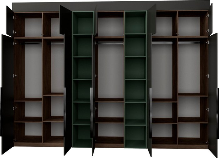 ✅Ключевые характеристикиШкаф представляет собой готовую к установке модульную конструкцию с распашными дверцами и вместительным внутренним наполнением; включающим полки и штангу. Высота изделия регулируется с помощью доборных элементов в диапазоне от 2450 до 2740 мм; что позволяет адаптировать шкаф под разные помещения. Материалы корпуса и фасада выполнены из ЛДСП класса Е0.5 с ПВХ кромкой; обеспечивая экологичность и долговечность. Общие габариты составляют 353.2 см в ширину; вес изделия - 506.36 кг.✅Преимущества и отличияФурнитура высокого качества от Blum и Hafele оснащена доводчиками и tip-on механизмами для плавного и бесшумного закрывания дверей. Регулируемые металлические опоры компенсируют неровности пола; а специальные крепления защищают шкаф от опрокидывания; что повышает безопасность эксплуатации. Фасады выполнены до пола без видимого цоколя; что придаёт изделию современный и аккуратный внешний вид.✅ПрактичностьШкаф легко собирается даже в узких помещениях и подходит для установки в нишу; угол или вдоль стены. Модульная конструкция позволяет использовать его в различных жилых и рабочих пространствах; включая детскую; спальню; прихожую; столовую и офис. Направляющие скрытого монтажа с доводчиками обеспечивают удобство и долговечность эксплуатации. Наличие антресоли увеличивает полезное пространство для хранения.✅УникальностьДвухстороннее исполнение шкафа расширяет возможности размещения и использования в интерьере. Использование сертифицированных материалов и фурнитуры премиум-класса гарантирует высокое качество и надёжность. Регулируемая высота и продуманная конструкция делают изделие универсальным решением для разных типов помещений и стилей интерьера.✅Ключевые характеристикиШкаф представляет собой готовую к установке модульную конструкцию с распашными дверцами и вместительным внутренним наполнением; включающим полки и штангу. Высота изделия регулируется с помощью доборных элементов в диапазоне от 2450 до 2740 мм; что позволяет адаптировать шкаф под разные помещения. Материалы корпуса и фасада выполнены из ЛДСП класса Е0.5 с ПВХ кромкой; обеспечивая экологичность и долговечность. Общие габариты составляют 353.2 см в ширину; вес изделия - 506.36 кг.✅Преимущества и отличияФурнитура высокого качества от Blum и Hafele оснащена доводчиками и tip-on механизмами для плавного и бесшумного закрывания дверей. Регулируемые металлические опоры компенсируют неровности пола; а специальные крепления защищают шкаф от опрокидывания; что повышает безопасность эксплуатации. Фасады выполнены до пола без видимого цоколя; что придаёт изделию современный и аккуратный внешний вид.✅ПрактичностьШкаф легко собирается даже в узких помещениях и подходит для установки в нишу; угол или вдоль стены. Модульная конструкция позволяет использовать его в различных жилых и рабочих пространствах; включая детскую; спальню; прихожую; столовую и офис. Направляющие скрытого монтажа с доводчиками обеспечивают удобство и долговечность эксплуатации. Наличие антресоли увеличивает полезное пространство для хранения.✅УникальностьДвухстороннее исполнение шкафа расширяет возможности размещения и использования в интерьере. Использование сертифицированных материалов и фурнитуры премиум-класса гарантирует высокое качество и надёжность. Регули