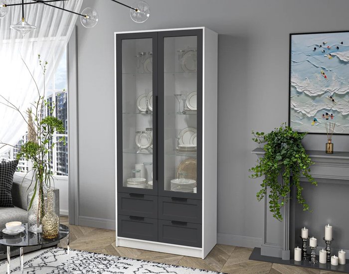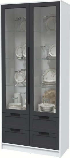- ✅Ключевые характеристикиШкаф с витриной предназначен для хранения посуды и предметов общего назначения в жилой комнате или столовой. Модель выполнена в модульном формате с двумя распашными дверцами и четырьмя ящиками; дополненными шестью полками внутри. Размеры изделия составляют 91.8 см в ширину; что обеспечивает вместительность при компактных габаритах.✅Преимущества и отличияКорпус выполнен из белого материала; а фасад из ЛМДФ и стекла с фрезеровкой; что придаёт изделию современный и стильный вид. Металлические ручки и чёрная фурнитура обеспечивают надёжность и долговечность. Шариковые направляющие ящиков гарантируют плавное и удобное открывание; повышая комфорт использования.✅ПрактичностьШкаф поставляется в разобранном виде; что облегчает транспортировку и сборку. Напольная установка позволяет разместить шкаф в любом удобном месте комнаты. Отсутствие подсветки и зеркал делает конструкцию лаконичной и универсальной для различных интерьеров. Модель не имеет углового окончания; что упрощает размещение вдоль стен.✅УникальностьДизайн с фрезеровкой на фасаде и сочетание материалов ЛМДФ и стекла выделяют шкаф среди аналогичных решений. Модульная конструкция позволяет интегрировать шкаф в систему мебели; создавая гармоничный интерьер. Чёрная фурнитура и металлические ручки добавляют изделию современный акцент; подчёркивая его стиль и качество. ✅Ключевые характеристикиШкаф с витриной предназначен для хранения посуды и предметов общего назначения в жилой комнате или столовой. Модель выполнена в модульном формате с двумя распашными дверцами и четырьмя ящиками; дополненными шестью полками внутри. Размеры изделия составляют 91.8 см в ширину; что обеспечивает вместительность при компактных габаритах.✅Преимущества и отличияКорпус выполнен из белого материала; а фасад из ЛМДФ и стекла с фрезеровкой; что придаёт изделию современный и стильный вид. Металлические ручки и чёрная фурнитура обеспечивают надёжность и долговечность. Шариковые направляющие ящиков гарантируют плавное и удобное открывание; повышая комфорт использования.✅ПрактичностьШкаф поставляется в разобранном виде; что облегчает транспортировку и сборку. Напольная установка позволяет разместить шкаф в любом удобном месте комнаты. Отсутствие подсветки и зеркал делает конструкцию лаконичной и универсальной для различных интерьеров. Модель не имеет углового окончания; что упрощает размещение вдоль стен.✅УникальностьДизайн с фрезеровкой на фасаде и сочетание материалов ЛМДФ и стекла выделяют шкаф среди аналогичных решений. Модульная конструкция позволяет интегрировать шкаф в систему мебели; создавая гармоничный интерьер. Чёрная фурнитура и металлические ручки добавляют изделию современный акцент; подчёркивая его стиль и качество.