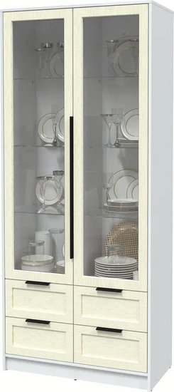 - ✅Ключевые характеристикиШкаф с витриной предназначен для хранения посуды и предметов общего назначения в жилой комнате или столовой. Изготовлен из ЛМДФ и стекла с металлическими ручками; имеет модульную конструкцию и две распашные двери. Размеры изделия составляют 91.8 см в ширину; что обеспечивает удобное и организованное хранение. Каркас выполнен в белом цвете; а фасад с фрезеровкой и стеклянными вставками придают изделию современный и стильный вид. Металлические ручки и черная фурнитура добавляют прочности и эстетики.✅ПрактичностьШкаф поставляется в разобранном виде; что облегчает транспортировку и сборку. Напольная установка позволяет разместить его в любом удобном месте комнаты. Отсутствие подсветки и зеркал делает конструкцию более простой и универсальной для различных интерьеров.✅УникальностьДизайн с фрезеровкой и сочетание светлого дерева с белым каркасом создают эффект легкости и воздушности. Использование ЛМДФ и стекла в фасаде обеспечивает долговечность и устойчивость к износу; а модульная система позволяет интегрировать шкаф в различные мебельные композиции. ✅Ключевые характеристикиШкаф с витриной предназначен для хранения посуды и предметов общего назначения в жилой комнате или столовой. Изготовлен из ЛМДФ и стекла с металлическими ручками; имеет модульную конструкцию и две распашные двери. Размеры изделия составляют 91.8 см в ширину; что обеспечивает удобное и организованное хранение. Каркас выполнен в белом цвете; а фасад с фрезеровкой и стеклянными вставками придают изделию современный и стильный вид. Металлические ручки и черная фурнитура добавляют прочности и эстетики.✅ПрактичностьШкаф поставляется в разобранном виде; что облегчает транспортировку и сборку. Напольная установка позволяет разместить его в любом удобном месте комнаты. Отсутствие подсветки и зеркал делает конструкцию более простой и универсальной для различных интерьеров.✅УникальностьДизайн с фрезеровкой и сочетание светлого дерева с белым каркасом создают эффект легкости и воздушности. Использование ЛМДФ и стекла в фасаде обеспечивает долговечность и устойчивость к износу; а модульная система позволяет интегрировать шкаф в различные мебельные композиции.