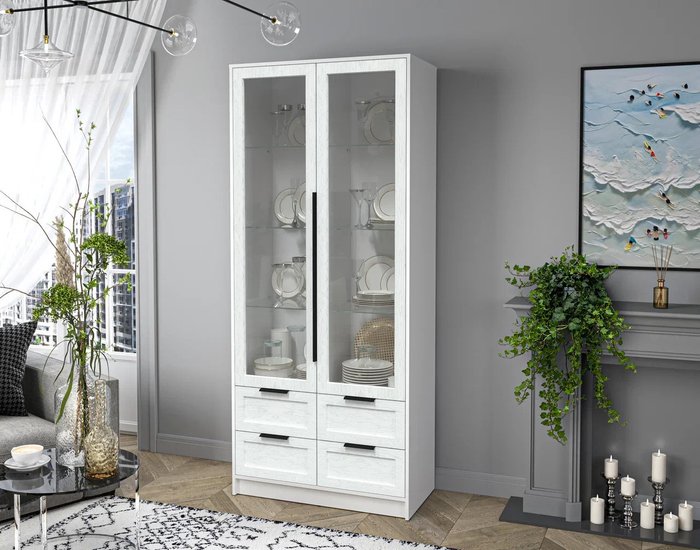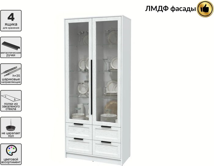 - ✅Ключевые характеристикиШкаф с витриной предназначен для хранения посуды и предметов общего назначения в жилой комнате или столовой. Модель выполнена в модульной конструкции с двумя распашными дверцами и четырьмя ящиками; оснащёнными шариковыми направляющими. Высота изделия составляет 212.8 см; ширина 91.8 см; глубина 45.1 см; что обеспечивает вместительность и удобство использования.✅Преимущества и отличияФасады из ЛМДФ и стекла с фрезеровкой придают шкафу стильный и современный вид; а металлические ручки и чёрная фурнитура обеспечивают надёжность и долговечность. Светлый оттенок дуба полярного в сочетании с белым корпусом создаёт лёгкую и уютную атмосферу в интерьере. Наличие четырёх ящиков и шести полок позволяет рационально организовать пространство для хранения.✅ПрактичностьШкаф поставляется в разобранном виде; что облегчает транспортировку и сборку. Напольная установка обеспечивает устойчивость и простоту размещения в комнате. Отсутствие подсветки и зеркал делает конструкцию лаконичной и универсальной для различных стилей интерьера. Шариковые направляющие ящиков гарантируют плавное и бесшумное открывание.✅УникальностьДизайн с фрезеровкой на фасадах подчёркивает индивидуальность изделия; а сочетание материалов ЛМДФ и стекла обеспечивает баланс между прочностью и эстетикой. Модель входит в коллекцию Концепт Тренд; что отражает современные тенденции в мебельном дизайне и функциональности. ✅Ключевые характеристикиШкаф с витриной предназначен для хранения посуды и предметов общего назначения в жилой комнате или столовой. Модель выполнена в модульной конструкции с двумя распашными дверцами и четырьмя ящиками; оснащёнными шариковыми направляющими. Высота изделия составляет 212.8 см; ширина 91.8 см; глубина 45.1 см; что обеспечивает вместительность и удобство использования.✅Преимущества и отличияФасады из ЛМДФ и стекла с фрезеровкой придают шкафу стильный и современный вид; а металлические ручки и чёрная фурнитура обеспечивают надёжность и долговечность. Светлый оттенок дуба полярного в сочетании с белым корпусом создаёт лёгкую и уютную атмосферу в интерьере. Наличие четырёх ящиков и шести полок позволяет рационально организовать пространство для хранения.✅ПрактичностьШкаф поставляется в разобранном виде; что облегчает транспортировку и сборку. Напольная установка обеспечивает устойчивость и простоту размещения в комнате. Отсутствие подсветки и зеркал делает конструкцию лаконичной и универсальной для различных стилей интерьера. Шариковые направляющие ящиков гарантируют плавное и бесшумное открывание.✅УникальностьДизайн с фрезеровкой на фасадах подчёркивает индивидуальность изделия; а сочетание материалов ЛМДФ и стекла обеспечивает баланс между прочностью и эстетикой. Модель входит в коллекцию Концепт Тренд; что отражает современные тенденции в мебельном дизайне и функциональности.
