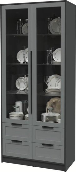 - ✅Ключевые характеристикиШкаф с витриной предназначен для хранения посуды и предметов общего назначения в жилой комнате или столовой. Модель выполнена в модульном формате с двумя распашными дверцами и четырьмя ящиками на шариковых направляющих. Высота изделия составляет 212.8 см; ширина 91.8 см; глубина 45.1 см; что обеспечивает вместительность и удобство использования.✅Преимущества и отличияФасады изготовлены из ЛМДФ с декоративной фрезеровкой и стеклом; что придаёт шкафу современный и стильный вид. Металлические ручки и чёрная фурнитура обеспечивают надёжность и долговечность. Наличие шести полок внутри шкафа позволяет рационально организовать пространство для хранения.✅ПрактичностьМодель поставляется в разобранном виде; что облегчает транспортировку и сборку. Напольная установка обеспечивает устойчивость. Отсутствие подсветки и зеркал делает шкаф универсальным для различных интерьеров. Чёрный каркас и серый фасад легко впишутся в современный дизайн помещения.✅УникальностьДизайн с фрезеровкой на фасадах и сочетание материалов ЛМДФ и стекла выделяют шкаф среди аналогичных решений. Модульная конструкция позволяет интегрировать шкаф в систему мебели; расширяя возможности оформления жилого пространства. ✅Ключевые характеристикиШкаф с витриной предназначен для хранения посуды и предметов общего назначения в жилой комнате или столовой. Модель выполнена в модульном формате с двумя распашными дверцами и четырьмя ящиками на шариковых направляющих. Высота изделия составляет 212.8 см; ширина 91.8 см; глубина 45.1 см; что обеспечивает вместительность и удобство использования.✅Преимущества и отличияФасады изготовлены из ЛМДФ с декоративной фрезеровкой и стеклом; что придаёт шкафу современный и стильный вид. Металлические ручки и чёрная фурнитура обеспечивают надёжность и долговечность. Наличие шести полок внутри шкафа позволяет рационально организовать пространство для хранения.✅ПрактичностьМодель поставляется в разобранном виде; что облегчает транспортировку и сборку. Напольная установка обеспечивает устойчивость. Отсутствие подсветки и зеркал делает шкаф универсальным для различных интерьеров. Чёрный каркас и серый фасад легко впишутся в современный дизайн помещения.✅УникальностьДизайн с фрезеровкой на фасадах и сочетание материалов ЛМДФ и стекла выделяют шкаф среди аналогичных решений. Модульная конструкция позволяет интегрировать шкаф в систему мебели; расширяя возможности оформления жилого пространства.