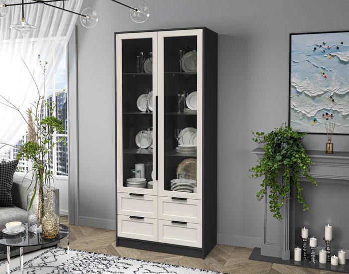 - ✅Ключевые характеристикиШкаф с витриной предназначен для хранения посуды и предметов общего назначения в жилой комнате или столовой. Модель выполнена в модульном формате с двумя распашными дверцами и четырьмя ящиками; оснащёнными шариковыми направляющими. Высота изделия составляет 212.8 см; ширина - 91.8 см; глубина - 45.1 см.✅Преимущества и отличияФасады из ЛМДФ и стекла с фрезеровкой придают шкафу стильный и современный вид; а металлические ручки обеспечивают долговечность и удобство использования. Чёрный каркас и фурнитура подчёркивают элегантность конструкции; а наличие шести полок внутри позволяет рационально организовать пространство.✅ПрактичностьШкаф поставляется в разобранном виде; что облегчает транспортировку и сборку. Напольная установка обеспечивает устойчивость; а отсутствие угловой конструкции делает изделие универсальным для различных планировок. Четыре вместительных ящика и полки позволяют удобно хранить разнообразные предметы.✅УникальностьДизайн с фрезеровкой и сочетание материалов ЛМДФ и стекла создают эффектный внешний вид; который выделяет изделие среди аналогов. Модель входит в коллекцию Концепт Тренд; что гарантирует современный стиль и высокое качество исполнения. ✅Ключевые характеристикиШкаф с витриной предназначен для хранения посуды и предметов общего назначения в жилой комнате или столовой. Модель выполнена в модульном формате с двумя распашными дверцами и четырьмя ящиками; оснащёнными шариковыми направляющими. Высота изделия составляет 212.8 см; ширина - 91.8 см; глубина - 45.1 см.✅Преимущества и отличияФасады из ЛМДФ и стекла с фрезеровкой придают шкафу стильный и современный вид; а металлические ручки обеспечивают долговечность и удобство использования. Чёрный каркас и фурнитура подчёркивают элегантность конструкции; а наличие шести полок внутри позволяет рационально организовать пространство.✅ПрактичностьШкаф поставляется в разобранном виде; что облегчает транспортировку и сборку. Напольная установка обеспечивает устойчивость; а отсутствие угловой конструкции делает изделие универсальным для различных планировок. Четыре вместительных ящика и полки позволяют удобно хранить разнообразные предметы.✅УникальностьДизайн с фрезеровкой и сочетание материалов ЛМДФ и стекла создают эффектный внешний вид; который выделяет изделие среди аналогов. Модель входит в коллекцию Концепт Тренд; что гарантирует современный стиль и высокое качество исполнения.