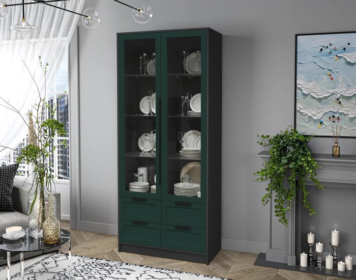 - ✅Ключевые характеристикиШкаф с витриной предназначен для хранения посуды и предметов общего назначения в жилой комнате или столовой. Модель выполнена в модульном формате; что позволяет интегрировать её в различные интерьерные решения. Размеры изделия составляют 91.8 см в ширину; что обеспечивает вместительность при компактных габаритах.✅Преимущества и отличияФасады из ЛМДФ и стекла с фрезеровкой придают шкафу современный и стильный вид; а металлические ручки и черная фурнитура обеспечивают надежность и долговечность. Наличие четырёх ящиков с шариковыми направляющими гарантирует плавное и удобное открывание; а шесть полок внутри шкафа позволяют рационально организовать пространство.✅ПрактичностьМодель поставляется в разобранном виде; что облегчает транспортировку и сборку. Напольная установка обеспечивает устойчивость конструкции. Распашные двери удобны в использовании и обеспечивают полный доступ к содержимому. Отсутствие подсветки и зеркал делает шкаф универсальным для различных стилей интерьера.✅УникальностьДизайн с фрезеровкой на фасадах и сочетание материалов ЛМДФ и стекла выделяют шкаф среди типичных решений. Модульная система позволяет комбинировать шкаф с другими элементами коллекции; создавая гармоничное и функциональное пространство без лишних деталей. ✅Ключевые характеристикиШкаф с витриной предназначен для хранения посуды и предметов общего назначения в жилой комнате или столовой. Модель выполнена в модульном формате; что позволяет интегрировать её в различные интерьерные решения. Размеры изделия составляют 91.8 см в ширину; что обеспечивает вместительность при компактных габаритах.✅Преимущества и отличияФасады из ЛМДФ и стекла с фрезеровкой придают шкафу современный и стильный вид; а металлические ручки и черная фурнитура обеспечивают надежность и долговечность. Наличие четырёх ящиков с шариковыми направляющими гарантирует плавное и удобное открывание; а шесть полок внутри шкафа позволяют рационально организовать пространство.✅ПрактичностьМодель поставляется в разобранном виде; что облегчает транспортировку и сборку. Напольная установка обеспечивает устойчивость конструкции. Распашные двери удобны в использовании и обеспечивают полный доступ к содержимому. Отсутствие подсветки и зеркал делает шкаф универсальным для различных стилей интерьера.✅УникальностьДизайн с фрезеровкой на фасадах и сочетание материалов ЛМДФ и стекла выделяют шкаф среди типичных решений. Модульная система позволяет комбинировать шкаф с другими элементами коллекции; создавая гармоничное и функциональное пространство без лишних деталей.