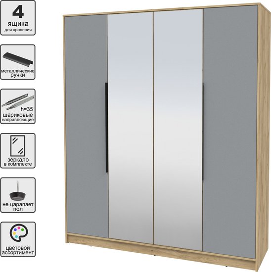 - ✅ Шкаф Интерлиния Концепт КТ-Ш4з — это идеальное решение для хранения одежды и других вещей в вашем доме. Он прекрасно впишется в интерьер жилой комнаты, спальни или прихожей, добавляя стиль и функциональность.✅ Этот платяной шкаф оснащен четырьмя дверями, что обеспечивает удобный доступ к содержимому. Зеркальная поверхность фасада не только визуально увеличивает пространство, но и добавляет элегантности в ваш интерьер. ✅ Изготовленный из качественного ЛДСП, шкаф отличается прочностью и долговечностью. Деревянный каркас в сочетании с зеркалом создает гармоничный и современный вид, который будет радовать вас каждый день.✅ Внутреннее наполнение шкафа включает полки, штангу для вешалок и ящики, что позволяет организовать хранение одежды и аксессуаров максимально удобно. Шариковые направляющие обеспечивают легкое и плавное открытие дверей.⚠️ Установка шкафа производится напольным способом, что гарантирует его устойчивость и надежность. ✅ Шкаф Интерлиния Концепт КТ-Ш4з — это не только функциональный элемент мебели, но и стильный акцент в вашем интерьере, который поможет поддерживать порядок и организованность в вашем доме. ✅ Шкаф Интерлиния Концепт КТ-Ш4з — это идеальное решение для хранения одежды и других вещей в вашем доме. Он прекрасно впишется в интерьер жилой комнаты, спальни или прихожей, добавляя стиль и функциональность.✅ Этот платяной шкаф оснащен четырьмя дверями, что обеспечивает удобный доступ к содержимому. Зеркальная поверхность фасада не только визуально увеличивает пространство, но и добавляет элегантности в ваш интерьер. ✅ Изготовленный из качественного ЛДСП, шкаф отличается прочностью и долговечностью. Деревянный каркас в сочетании с зеркалом создает гармоничный и современный вид, который будет радовать вас каждый день.✅ Внутреннее наполнение шкафа включает полки, штангу для вешалок и ящики, что позволяет организовать хранение одежды и аксессуаров максимально удобно. Шариковые направляющие обеспечивают легкое и плавное открытие дверей.⚠️ Установка шкафа производится напольным способом, что гарантирует его устойчивость и надежность. ✅ Шкаф Интерлиния Концепт КТ-Ш4з — это не только функциональный элемент мебели, но и стильный акцент в вашем интерьере, который поможет поддерживать порядок и организованность в вашем доме.