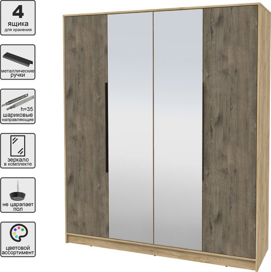 - ✅ Шкаф Интерлиния Концепт КТ-Ш4з — идеальное решение для вашего интерьера! Этот стильный и функциональный шкаф прекрасно впишется в любую жилую комнату, спальню или прихожую, обеспечивая удобное хранение одежды и других вещей. ✅ Изготовленный из качественного ЛДСП, шкаф отличается прочностью и долговечностью. Зеркальные фасады добавляют визуального пространства и света в комнату, а черная фурнитура придает ему современный и элегантный вид. ✅ С четырьмя дверями и продуманным наполнением, включая полки, штангу и ящики, шкаф предлагает достаточно места для хранения. Вы сможете легко организовать свои вещи и поддерживать порядок в доме. ⚠️ Установка шкафа осуществляется напольным способом, что обеспечивает его устойчивость и надежность. ✅ Ширина 180 см и высота 212.8 см делают этот шкаф отличным выбором для просторных помещений, а глубина 54.7 см позволяет сэкономить место, не жертвуя функциональностью. ✅ Коллекция Концепт от Интерлиния — это сочетание современного дизайна и практичности, что делает шкаф идеальным выбором для тех, кто ценит стиль и комфорт в своем доме. ✅ Шкаф Интерлиния Концепт КТ-Ш4з — идеальное решение для вашего интерьера! Этот стильный и функциональный шкаф прекрасно впишется в любую жилую комнату, спальню или прихожую, обеспечивая удобное хранение одежды и других вещей. ✅ Изготовленный из качественного ЛДСП, шкаф отличается прочностью и долговечностью. Зеркальные фасады добавляют визуального пространства и света в комнату, а черная фурнитура придает ему современный и элегантный вид. ✅ С четырьмя дверями и продуманным наполнением, включая полки, штангу и ящики, шкаф предлагает достаточно места для хранения. Вы сможете легко организовать свои вещи и поддерживать порядок в доме. ⚠️ Установка шкафа осуществляется напольным способом, что обеспечивает его устойчивость и надежность. ✅ Ширина 180 см и высота 212.8 см делают этот шкаф отличным выбором для просторных помещений, а глубина 54.7 см позволяет сэкономить место, не жертвуя функциональностью. ✅ Коллекция Концепт от Интерлиния — это сочетание современного дизайна и практичности, что делает шкаф идеальным выбором для тех, кто ценит стиль и комфорт в своем доме.