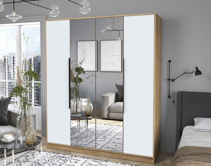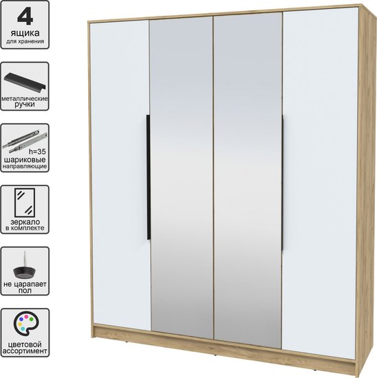 ✅ Шкаф Интерлиния Концепт КТ-Ш4з — это идеальное решение для вашего интерьера, которое сочетает в себе стиль и функциональность. Он прекрасно впишется в любую жилую комнату, спальню или прихожую, обеспечивая удобное хранение одежды и других вещей.✅ Этот платяной шкаф оснащен четырьмя дверями, что позволяет легко организовать пространство. Внутреннее наполнение включает полки, штангу для вешалок и ящики, что делает его универсальным для хранения как верхней одежды, так и аксессуаров. ⚠️ Обратите внимание на высококачественные материалы: фасад выполнен из зеркала и ЛДСП, а каркас — из прочного ЛДСП. Это гарантирует долговечность и надежность шкафа, а также легкость в уходе.✅ Элегантный дизайн шкафа с зеркальными дверями не только визуально увеличивает пространство, но и добавляет изысканности вашему интерьеру. Черная фурнитура подчеркивает современный стиль и гармонично сочетается с древесными оттенками.✅ Шкаф поставляется в разобранном виде, что облегчает его транспортировку и установку. Напольная установка обеспечивает стабильность и надежность, а шариковые направляющие делают открытие и закрытие дверей легким и бесшумным.✅ Выбирая шкаф Интерлиния Концепт КТ-Ш4з, вы получаете не только функциональный предмет мебели, но и стильный акцент для вашего дома. Создайте уютное и организованное пространство с помощью этого практичного решения!✅ Шкаф Интерлиния Концепт КТ-Ш4з — это идеальное решение для вашего интерьера, которое сочетает в себе стиль и функциональность. Он прекрасно впишется в любую жилую комнату, спальню или прихожую, обеспечивая удобное хранение одежды и других вещей.✅ Этот платяной шкаф оснащен четырьмя дверями, что позволяет легко организовать пространство. Внутреннее наполнение включает полки, штангу для вешалок и ящики, что делает его универсальным для хранения как верхней одежды, так и аксессуаров. ⚠️ Обратите внимание на высококачественные материалы: фасад выполнен из зеркала и ЛДСП, а каркас — из прочного ЛДСП. Это гарантирует долговечность и надежность шкафа, а также легкость в уходе.✅ Элегантный дизайн шкафа с зеркальными дверями не только визуально увеличивает пространство, но и добавляет изысканности вашему интерьеру. Черная фурнитура подчеркивает современный стиль и гармонично сочетается с древесными оттенками.✅ Шкаф поставляется в разобранном виде, что облегчает его транспортировку и установку. Напольная установка обеспечивает стабильность и надежность, а шариковые направляющие делают открытие и закрытие дверей легким и бесшумным.✅ Выбирая шкаф Интерлиния Концепт КТ-Ш4з, вы получаете не только функциональный предмет мебели, но и стильный акцент для вашего дома. Создайте уютное и организованное пространство с помощью этого практичного решения!