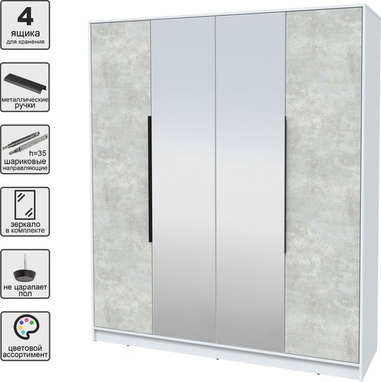 ✅ Шкаф Интерлиния Концепт КТ-Ш4з — идеальное решение для вашего интерьера! Этот стильный и функциональный шкаф прекрасно впишется в любую жилую комнату, спальню или прихожую. Его продуманный дизайн и вместительность позволяют удобно хранить одежду и другие вещи, обеспечивая порядок в вашем доме.✅ Изготовленный из качественного ЛДСП, шкаф отличается прочностью и долговечностью. Зеркальные фасады не только добавляют элегантности, но и визуально увеличивают пространство, что особенно актуально для небольших комнат. Четыре двери обеспечивают легкий доступ к содержимому, а внутреннее наполнение с полками, штангой и ящиками позволяет организовать хранение по вашему усмотрению.✅ Удобная напольная установка и стандартное угловое окончание делают шкаф простым в монтаже и использовании. Шариковые направляющие обеспечивают плавное открытие и закрытие дверей, что добавляет комфорта в повседневной эксплуатации. ⚠️ Не упустите возможность преобразить ваш интерьер с помощью шкафа Интерлиния Концепт КТ-Ш4з! Этот шкаф станет не только функциональным элементом, но и стильным акцентом в вашем доме.✅ Шкаф Интерлиния Концепт КТ-Ш4з — идеальное решение для вашего интерьера! Этот стильный и функциональный шкаф прекрасно впишется в любую жилую комнату, спальню или прихожую. Его продуманный дизайн и вместительность позволяют удобно хранить одежду и другие вещи, обеспечивая порядок в вашем доме.✅ Изготовленный из качественного ЛДСП, шкаф отличается прочностью и долговечностью. Зеркальные фасады не только добавляют элегантности, но и визуально увеличивают пространство, что особенно актуально для небольших комнат. Четыре двери обеспечивают легкий доступ к содержимому, а внутреннее наполнение с полками, штангой и ящиками позволяет организовать хранение по вашему усмотрению.✅ Удобная напольная установка и стандартное угловое окончание делают шкаф простым в монтаже и использовании. Шариковые направляющие обеспечивают плавное открытие и закрытие дверей, что добавляет комфорта в повседневной эксплуатации. ⚠️ Не упустите возможность преобразить ваш интерьер с помощью шкафа Интерлиния Концепт КТ-Ш4з! Этот шкаф станет не только функциональным элементом, но и стильным акцентом в вашем доме.