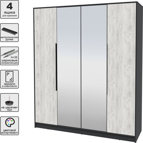 ✅ Шкаф Интерлиния Концепт КТ-Ш4з — это идеальное решение для хранения одежды и других вещей в вашем доме. Он прекрасно впишется в интерьер жилой комнаты, спальни или прихожей, обеспечивая порядок и удобство. ✅ Этот стильный шкаф с четырьмя дверями предлагает достаточно места для хранения как платяной одежды, так и предметов общего назначения. Благодаря продуманному наполнению, включающему полки, штангу и ящики, вы сможете организовать пространство так, как вам удобно.✅ Изготовленный из качественного ЛДСП, шкаф отличается прочностью и долговечностью. Зеркальные фасады добавляют визуального объема и света в помещение, а черные элементы каркаса и фурнитуры придают ему современный и элегантный вид.⚠️ Установка шкафа осуществляется напольным способом, что обеспечивает его устойчивость и надежность. Обратите внимание, что шкаф поставляется в разобранном виде, что облегчает транспортировку и сборку.✅ Шкаф Интерлиния Концепт КТ-Ш4з станет не только функциональным элементом вашего интерьера, но и стильным акцентом, который подчеркнет ваш вкус и индивидуальность.✅ Шкаф Интерлиния Концепт КТ-Ш4з — это идеальное решение для хранения одежды и других вещей в вашем доме. Он прекрасно впишется в интерьер жилой комнаты, спальни или прихожей, обеспечивая порядок и удобство. ✅ Этот стильный шкаф с четырьмя дверями предлагает достаточно места для хранения как платяной одежды, так и предметов общего назначения. Благодаря продуманному наполнению, включающему полки, штангу и ящики, вы сможете организовать пространство так, как вам удобно.✅ Изготовленный из качественного ЛДСП, шкаф отличается прочностью и долговечностью. Зеркальные фасады добавляют визуального объема и света в помещение, а черные элементы каркаса и фурнитуры придают ему современный и элегантный вид.⚠️ Установка шкафа осуществляется напольным способом, что обеспечивает его устойчивость и надежность. Обратите внимание, что шкаф поставляется в разобранном виде, что облегчает транспортировку и сборку.✅ Шкаф Интерлиния Концепт КТ-Ш4з станет не только функциональным элементом вашего интерьера, но и стильным акцентом, который подчеркнет ваш вкус и индивидуальность.