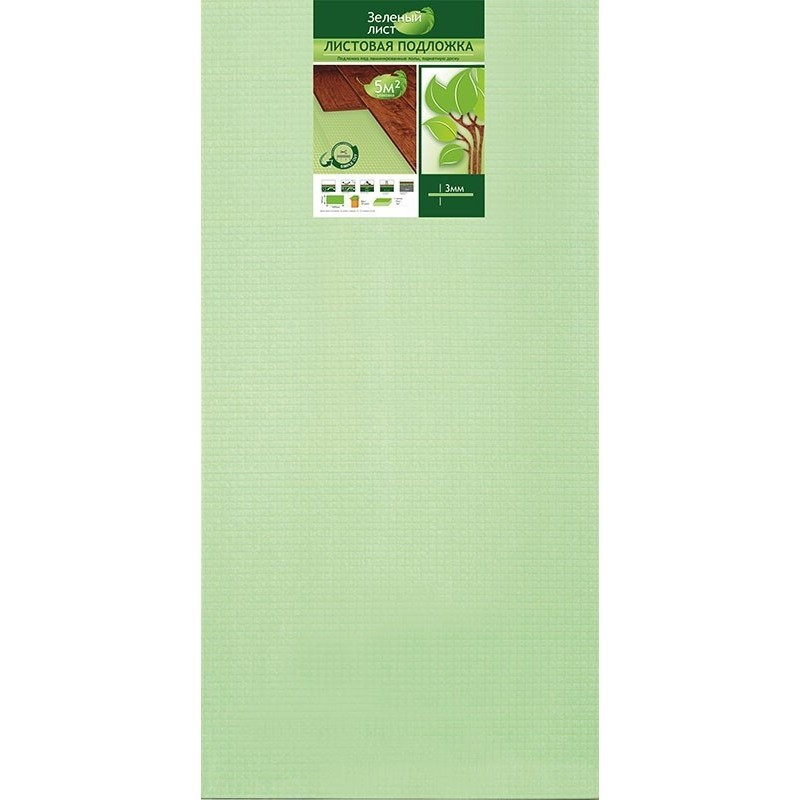 Подложка к ламинату листовая 3мм зеленая (1уп 10шт=5м2) Солид