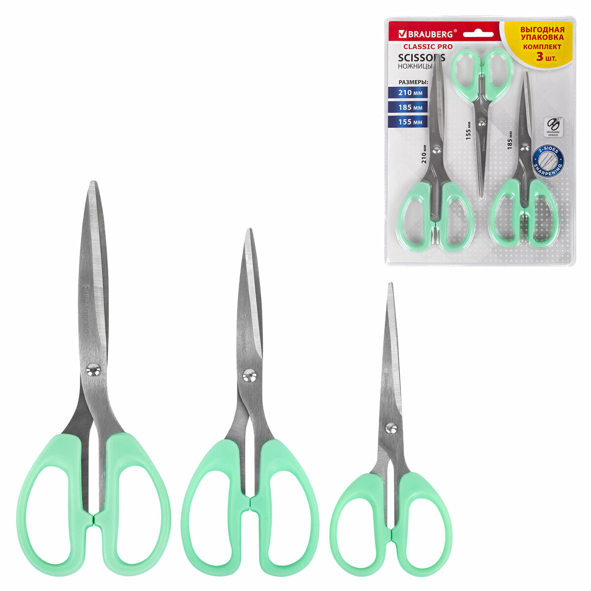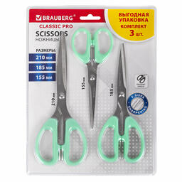 Набор ножниц канцелярских Brauberg Classic Pro / 272979 (3шт, мятный)