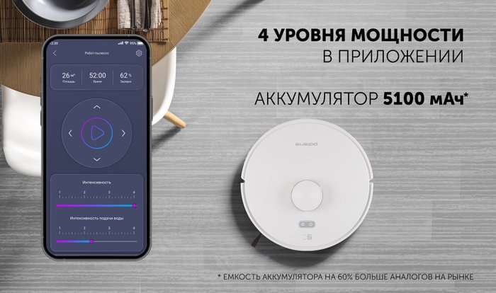 ✅Ключевые характеристикиРобот-пылесос предназначен для автоматизированной сухой и влажной уборки пола в помещениях до 240 кв.м, оснащён лазерной системой навигации и аккумулятором ёмкостью 5100 мА·ч. Время автономной работы достигает 240 минут, сила всасывания составляет 9000 Па, предусмотрены три режима движения и четыре уровня мощности. Управление осуществляется через мобильное приложение по Wi-Fi.✅Преимущества и отличияУстройство строит точную карту помещения, разделяя пространство на зоны и комнаты, а также позволяет задавать до 10 запретных зон в каждой комнате. После подзарядки робот возобновляет уборку с последней точки. В комплекте имеются боковая щётка и электрощётка, установлен НЕРА-фильтр для качественной фильтрации воздуха.✅ПрактичностьПылесос поддерживает настройку расписания уборки по дням и времени, а также допускает неограниченное количество пользователей для дистанционного контроля. Многоуровневая защита данных и возможность установки прав администратора обеспечивают безопасность эксплуатации. Информация о процессе уборки доступна в приложении Polaris IQ Home.✅УникальностьОсобенностью модели является интеграция интеллектуальной системы управления с детальной настройкой зон уборки и ограничений для разных типов задач, что позволяет максимально адаптировать процесс под индивидуальные требования. Высокая высота преодоления препятствий до 2 см и поддержка трёх типов запретных зон делают устройство универсальным решением для различных напольных покрытий и планировок.✅Ключевые характеристикиРобот-пылесос предназначен для автоматизированной сухой и влажной уборки пола в помещениях до 240 кв.м, оснащён лазерной системой навигации и аккумулятором ёмкостью 5100 мА·ч. Время автономной работы достигает 240 минут, сила всасывания составляет 9000 Па, предусмотрены три режима движения и четыре уровня мощности. Управление осуществляется через мобильное приложение по Wi-Fi.✅Преимущества и отличияУстройство строит точную карту помещения, разделяя пространство на зоны и комнаты, а также позволяет задавать до 10 запретных зон в каждой комнате. После подзарядки робот возобновляет уборку с последней точки. В комплекте имеются боковая щётка и электрощётка, установлен НЕРА-фильтр для качественной фильтрации воздуха.✅ПрактичностьПылесос поддерживает настройку расписания уборки по дням и времени, а также допускает неограниченное количество пользователей для дистанционного контроля. Многоуровневая защита данных и возможность установки прав администратора обеспечивают безопасность эксплуатации. Информация о процессе уборки доступна в приложении Polaris IQ Home.✅УникальностьОсобенностью модели является интеграция интеллектуальной системы управления с детальной настройкой зон уборки и ограничений для разных типов задач, что позволяет максимально адаптировать процесс под индивидуальные требования. Высокая высота преодоления препятствий до 2 см и поддержка трёх типов запретных зон делают устройство универсальным решением для различных напольных покрытий и планировок.