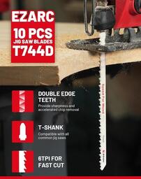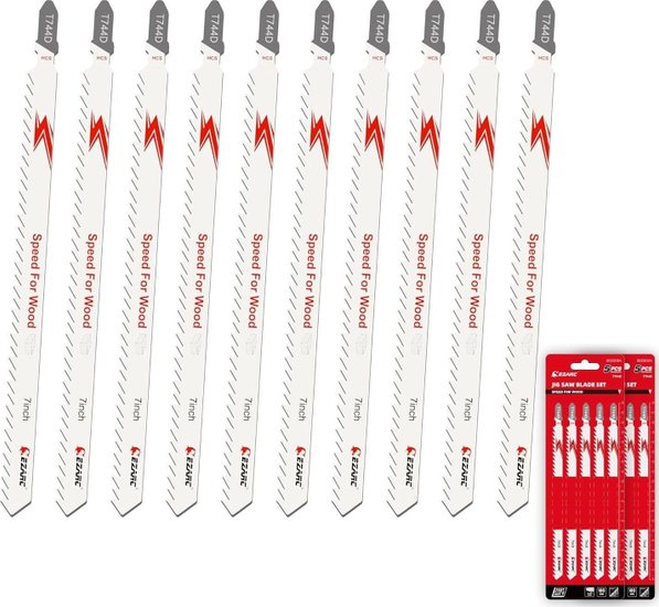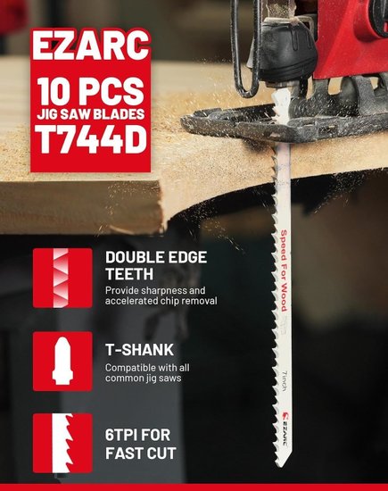 ✅Набор из 5 пильных полотен предназначен для резки дерева и пластика; обеспечивая универсальность и удобство в работе. Лезвия оснащены Т-образным хвостовиком; что позволяет использовать их с большинством популярных моделей лобзиков без необходимости в адаптерах.✅Полотна подходят для брендов Bosch; DeWalt; Makita; Ryobi и других; обеспечивая надежное крепление и минимальную вибрацию во время работы. Это гарантирует точные и аккуратные пропилы как по прямым; так и по криволинейным линиям даже при высоких скоростях.✅Лезвия изготовлены из быстрорежущей стали (HSS) с крючкообразными зубьями; что обеспечивает эффективную и агрессивную резку фанеры; твердой древесины; ламината; а также гладкие края при работе с акрилом; ПВХ и стекловолокном. Закаленное антипригарное покрытие снижает трение и нагрев; продлевая срок службы полотен на 30% по сравнению с обычными.✅Набор поставляется в прочном пластиковом футляре с маркированными слотами для удобного хранения и быстрого выбора нужного полотна. Это отличный выбор как для профессионалов; так и для домашних мастеров; работающих с различными материалами и задачами.✅Набор из 5 пильных полотен предназначен для резки дерева и пластика; обеспечивая универсальность и удобство в работе. Лезвия оснащены Т-образным хвостовиком; что позволяет использовать их с большинством популярных моделей лобзиков без необходимости в адаптерах.✅Полотна подходят для брендов Bosch; DeWalt; Makita; Ryobi и других; обеспечивая надежное крепление и минимальную вибрацию во время работы. Это гарантирует точные и аккуратные пропилы как по прямым; так и по криволинейным линиям даже при высоких скоростях.✅Лезвия изготовлены из быстрорежущей стали (HSS) с крючкообразными зубьями; что обеспечивает эффективную и агрессивную резку фанеры; твердой древесины; ламината; а также гладкие края при работе с акрилом; ПВХ и стекловолокном. Закаленное антипригарное покрытие снижает трение и нагрев; продлевая срок службы полотен на 30% по сравнению с обычными.✅Набор поставляется в прочном пластиковом футляре с маркированными слотами для удобного хранения и быстрого выбора нужного полотна. Это отличный выбор как для профессионалов; так и для домашних мастеров; работающих с различными материалами и задачами.