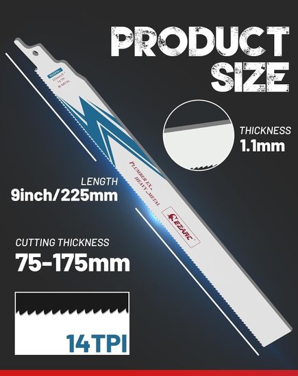 ✅Пильное полотно 9 дюймов предназначено для тяжелой резки металлов и выполнено из биметаллического сплава с 8% кобальта; что обеспечивает высокую прочность и долговечность. Оно оснащено 14 зубьями на дюйм; что позволяет делать плавные и чистые разрезы без заусенцев на металлических листах толщиной до 10 мм.✅Конструкция полотна сочетает в себе наконечники из быстрорежущей стали и корпус из углеродистой стали; что увеличивает срок службы в два раза по сравнению со стандартными полотнами. Термообработанный биметаллический сплав устойчив к износу и нагреву; что позволяет эффективно резать закаленную сталь; ржавые трубы и другие абразивные материалы.✅Полотно подходит для всех основных моделей сабельных пил; таких как Milwaukee; DeWalt; Bosch и Makita; и не требует адаптера благодаря универсальному хвостовику 1/2 дюйма. Оно обеспечивает минимальную вибрацию и отдачу; что делает процесс резки безопасным и контролируемым.✅Набор из 5 полотен предназначен для профессионального использования в промышленности; сантехнике и автомобильной разборке; обеспечивая высокую производительность при работе с металлическими трубами; профилями и листами средней толщины.✅Пильное полотно 9 дюймов предназначено для тяжелой резки металлов и выполнено из биметаллического сплава с 8% кобальта; что обеспечивает высокую прочность и долговечность. Оно оснащено 14 зубьями на дюйм; что позволяет делать плавные и чистые разрезы без заусенцев на металлических листах толщиной до 10 мм.✅Конструкция полотна сочетает в себе наконечники из быстрорежущей стали и корпус из углеродистой стали; что увеличивает срок службы в два раза по сравнению со стандартными полотнами. Термообработанный биметаллический сплав устойчив к износу и нагреву; что позволяет эффективно резать закаленную сталь; ржавые трубы и другие абразивные материалы.✅Полотно подходит для всех основных моделей сабельных пил; таких как Milwaukee; DeWalt; Bosch и Makita; и не требует адаптера благодаря универсальному хвостовику 1/2 дюйма. Оно обеспечивает минимальную вибрацию и отдачу; что делает процесс резки безопасным и контролируемым.✅Набор из 5 полотен предназначен для профессионального использования в промышленности; сантехнике и автомобильной разборке; обеспечивая высокую производительность при работе с металлическими трубами; профилями и листами средней толщины.