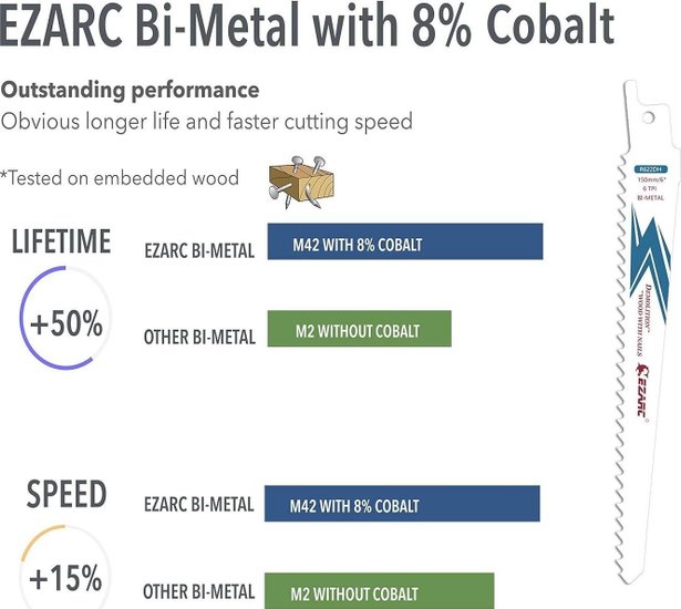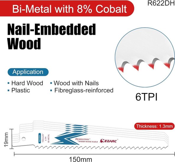 - ✅Биметаллическое пильное полотно длиной 6 дюймов предназначено для эффективного сноса деревянных конструкций; включая древесину с гвоздями и композитные материалы. Агрессивный дизайн с 6 зубьями на дюйм обеспечивает быструю и мощную резку плотной древесины и пиломатериалов. ✅Полотно изготовлено из биметалла с 8% кобальта; что значительно увеличивает срок службы инструмента в два раза по сравнению с обычными биметаллическими лезвиями. Зубья из быстрорежущей стали устойчивы к нагреву и износу; а корпус из углеродистой стали обеспечивает гибкость и прочность. ✅Толщина лезвия 1,3 мм минимизирует прогиб и обеспечивает прямые; контролируемые пропилы. Универсальный хвостовик 1/2 дюйма подходит для большинства возвратно-поступательных пил различных брендов; что упрощает использование без необходимости в адаптерах. ✅Комплект из 5 штук обеспечивает экономичность и долговечность для крупных проектов по реконструкции; демонтажу и разборке. Оптимизированная геометрия зубьев снижает трение и теплообразование; что продлевает срок службы полотен даже при работе с абразивными материалами. ✅Биметаллическое пильное полотно длиной 6 дюймов предназначено для эффективного сноса деревянных конструкций; включая древесину с гвоздями и композитные материалы. Агрессивный дизайн с 6 зубьями на дюйм обеспечивает быструю и мощную резку плотной древесины и пиломатериалов. ✅Полотно изготовлено из биметалла с 8% кобальта; что значительно увеличивает срок службы инструмента в два раза по сравнению с обычными биметаллическими лезвиями. Зубья из быстрорежущей стали устойчивы к нагреву и износу; а корпус из углеродистой стали обеспечивает гибкость и прочность. ✅Толщина лезвия 1,3 мм минимизирует прогиб и обеспечивает прямые; контролируемые пропилы. Универсальный хвостовик 1/2 дюйма подходит для большинства возвратно-поступательных пил различных брендов; что упрощает использование без необходимости в адаптерах. ✅Комплект из 5 штук обеспечивает экономичность и долговечность для крупных проектов по реконструкции; демонтажу и разборке. Оптимизированная геометрия зубьев снижает трение и теплообразование; что продлевает срок службы полотен даже при работе с абразивными материалами.