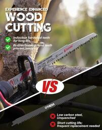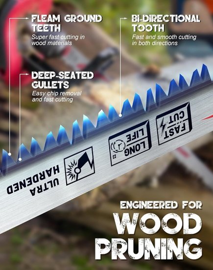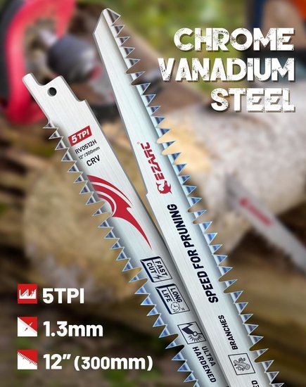 • ✅Пильные полотна с зубьями Fleam Ground длиной 300 мм предназначены для эффективной обрезки деревьев и резки древесины; пластика и бревен. Благодаря агрессивному шагу зубьев 5 TPI и специальной флом-шлифовке; полотна обеспечивают быстрый и чистый рез даже по мокрой древесине и толстым веткам.✅Зубья Fleam Ground изготовлены из прочной хромованадиевой стали (CrV) и проходят закалку; что гарантирует их долговечность и остроту при интенсивном использовании. Смещённая геометрия зубьев снижает вероятность застревания и обеспечивает плавный ход пилы.✅Полотна подходят для работы с влажной древесиной; зелёными ветками и пластиковыми трубами; что делает их универсальным инструментом для садовых и ландшафтных работ. Они обеспечивают скорость реза в 3 раза выше по сравнению со стандартными лезвиями.✅Доступны в упаковках по 5 штук; совместимы с большинством популярных моделей сабельных пил таких брендов; как DeWalt; Bosch; Makita и Milwaukee; без необходимости использования адаптеров. ✅Пильные полотна с зубьями Fleam Ground длиной 300 мм предназначены для эффективной обрезки деревьев и резки древесины; пластика и бревен. Благодаря агрессивному шагу зубьев 5 TPI и специальной флом-шлифовке; полотна обеспечивают быстрый и чистый рез даже по мокрой древесине и толстым веткам.✅Зубья Fleam Ground изготовлены из прочной хромованадиевой стали (CrV) и проходят закалку; что гарантирует их долговечность и остроту при интенсивном использовании. Смещённая геометрия зубьев снижает вероятность застревания и обеспечивает плавный ход пилы.✅Полотна подходят для работы с влажной древесиной; зелёными ветками и пластиковыми трубами; что делает их универсальным инструментом для садовых и ландшафтных работ. Они обеспечивают скорость реза в 3 раза выше по сравнению со стандартными лезвиями.✅Доступны в упаковках по 5 штук; совместимы с большинством популярных моделей сабельных пил таких брендов; как DeWalt; Bosch; Makita и Milwaukee; без необходимости использования адаптеров.