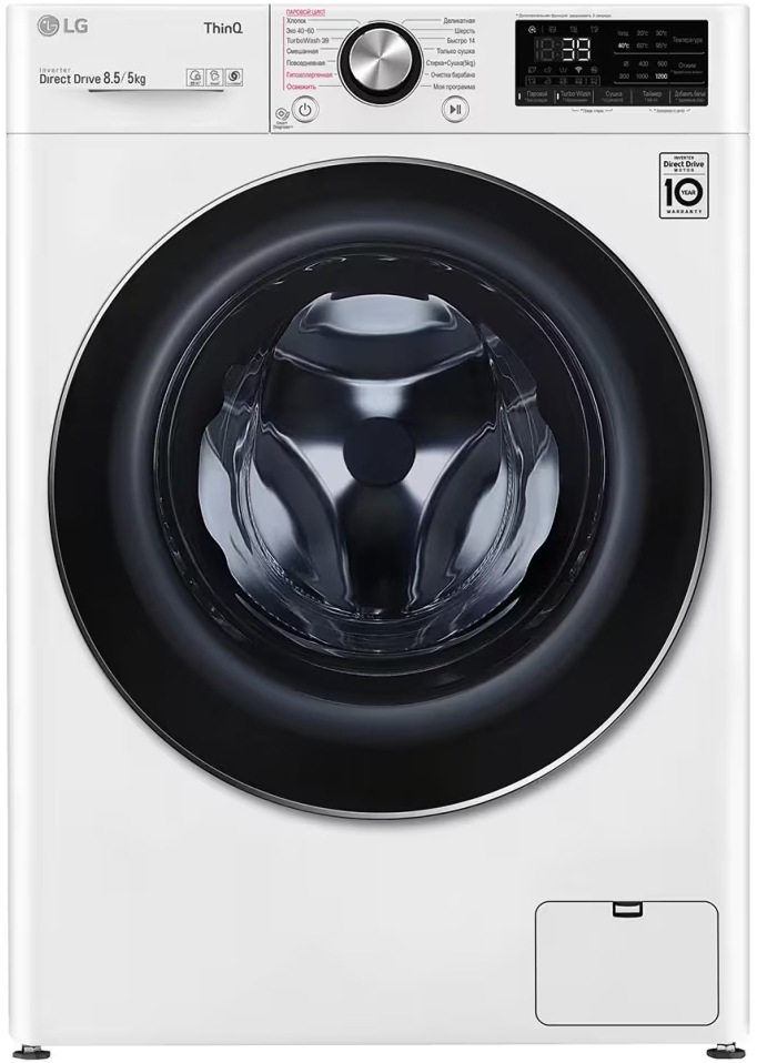 • Дополнительные параметры Приложение LG ThinQ (Wi-Fi) Smart Diagnosis™ Функция пара Steam™ Wi-Fi Функция быстрой стирки TurboWash™ Без складок Добавить белье Технология AI DD™ (интеллектуальная система определения типа ткани) Автоперезапуск Пузырьковая поверхность барабана Автовзвешивание Функция быстрой стирки TurboWash™