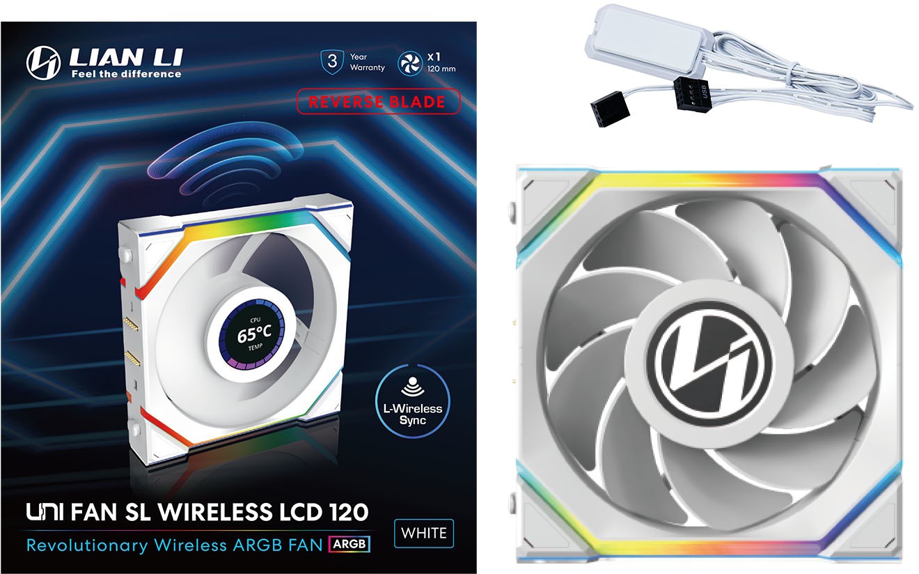 Lian Li Uni Fan SL120 Wireless LCD Reverse White