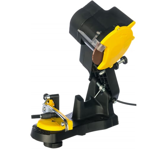 Станок для заточки цепей CHAMPION C2000 предназначен для качественного затачивания цепей любых цепных электро- и бензиновых пил. Он отличается удобством в применении и оснащен мощным двигателем. Используя данную модель, можно заточить не только основные режущие зубья в цепи, но и упорные резцы. В качестве точила используется абразивный диск диаметром 105 мм. Скорость его вращения достигает 4800 об/мин на холостом ходу. Он изолирован защитным кожухом. Угол наклона пильного полотна меняется. Он регулируется с помощью соответствующей шкалы установки. Так же предусмотрена регулировка глубины заточки. Для комфортного управления инструментом есть удобная ручка эргономичной формы. Она обеспечивает уверенное ведение заточки. Перед работой аппарат необходимо зафиксировать на верстаке или столе. Для этого предусмотрены специальные болты крепления.