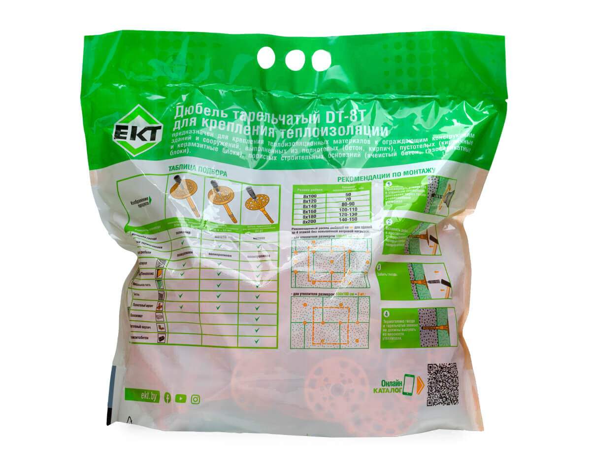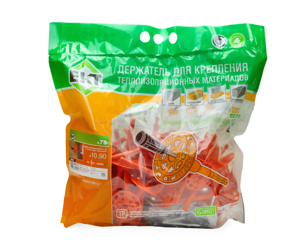 Дюбель для теплоизоляции ЕКТ Со стальным гвоздем с высокоэфф. термоголовкой / B009937 (10x90, 75шт)