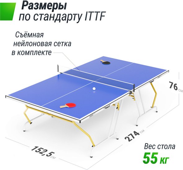 • Комплектация сетка нейлон, 2 ракетки, 3 шарика