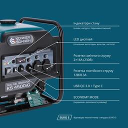 Генератор Konner&Sohnen газобензиновий інверторний KS 4500iG, 230В, 4.5кВт, ручний стартер, 33.5кг (KS4500IG)