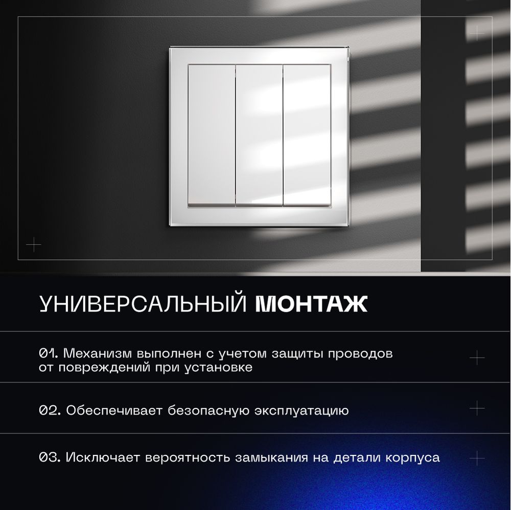 Выключатель встраиваемый Voltum S70 трехклавишный 10А, (белый глянцевый) VLS030101