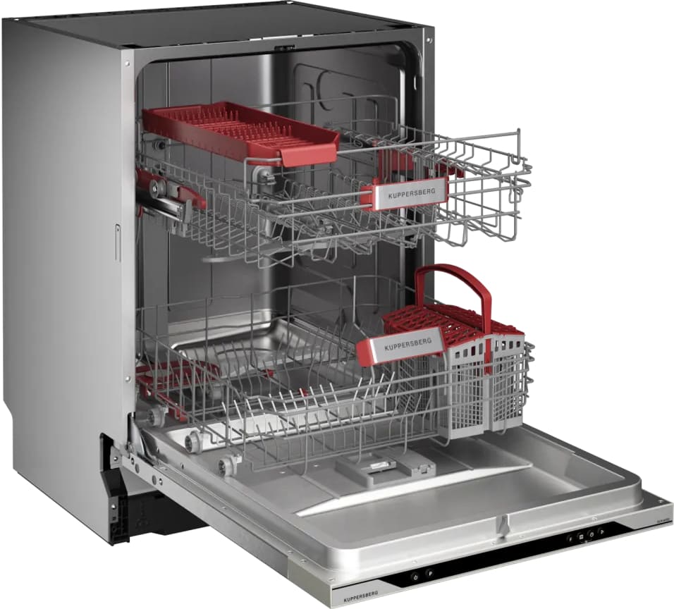 Встраиваемая модель Куперсберг отлично впишется в любой интерьер, главное — правильно выбрать место, чтобы подвести коммуникации. Устанавливается в нишу целиком, полностью закрывается декоративной панелью. Обратите внимание: в комплекте не идет фасад, его необходимо установить самостоятельно. Имеет стандартные размеры, поэтому может не поместиться на очень маленькой кухне. В камеру можно загрузить ограниченное число комплектов: 14 шт. Комплектом считается набор посуды на одного человека, который нужен для полноценного приема пищи: глубокая и плоская тарелки, тарелка для салата, блюдце под чашку, сама чашка, ложка и вилка. Используйте разные температурные режимы для мытья, в этой машинке их 7 шт. Есть автоматические программы с уже выбранными настройками под тип посуды или загрязнение. Специальный гигиенический режим гарантирует максимальную тщательность в удалении остатков пищи. Интенсивная мойка позволяет увеличить мощность, если в камере посуда для приготовления с подгоревшими или застарелыми загрязнениями. Быстрая программа экономит ваше время и справляется с легкими загрязнениями. Для деликатной посуды — стекла, хрусталя и т.д. — используйте специальные настройки, которые защищают хрупкую поверхность, но при этом удаляют грязь. Режим сушки облегчает последующий уход за посудой, предотвращает подтеки на стенках тарелок и бокалов и удаляет значительный процент влаги. Производители внедрили цикл такого типа: конденсационная. Внутренняя подсветка делает работу проще. Внутри расположены разнообразные датчики, сигналы которых выводятся на панель управления, позволяют вам контролировать процесс. Машинка определяет остаток соли и предупреждает о том, что нужно добавить. Отдельный датчик проверяет наличие ополаскивателя. Она надежно защищена от протечек — если по какой-то причине не будет работать слив, клапан заблокирует шланг, чтобы больше внутрь вода не поступала. По окончании работы она подаст специальный сигнал.
