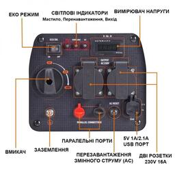 • Додатково індикатор роботи двигуна , захист від низького рівня масла , інформаційний дисплей , економічний режим , мідна обмотка