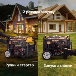 • Додатково індикатор роботи двигуна , захист від низького рівня масла , економічний режим , колеса для транспортування , мідна обмотка