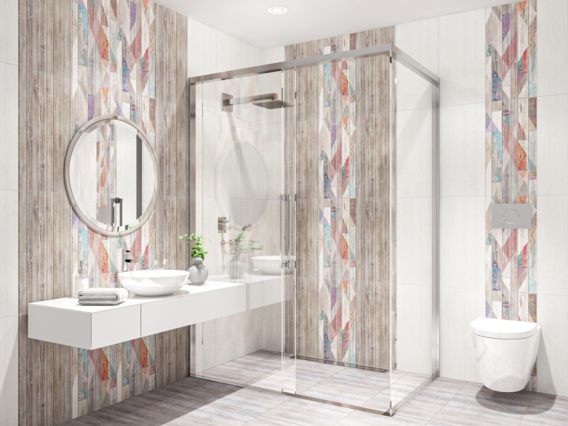 Эта коллекция воплощает в себе стиль шебби-шик, также известный как "потёртый блеск". Настенная плитка Shabby от Azori отличается сложной текстурой. Она создана в виде деревянной доски с покраской в оттенок слоновой кости. Для усиления эффекта дизайнеры добавили отпечаток льняной ткани поверх этих текстур, благодаря чему каждая дощечка кажется произведением индивидуального творчества мастера. Сопровождают ее бежевые и серые текстурированные модули, напоминающие вагонку. Для украшения была разработана многоцветная вставка Inti, представляющая собой наборной модуль из реек разных форматов, украшенных аутентичными орнаментами.