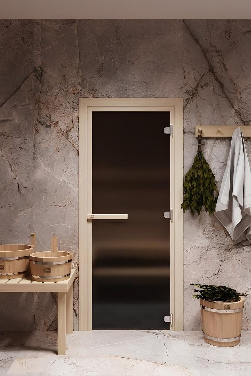 Дверь стеклянная для бани Cooper LITE 2000x800 бронза матовая (коробка осина)