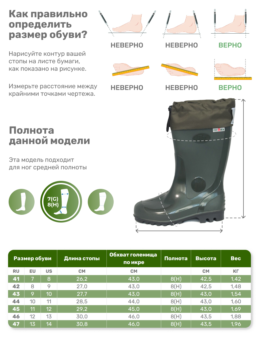 Сапоги для охоты и рыбалки FortMen ПВХ с манжетой 02(С) 430 (р-р 45)