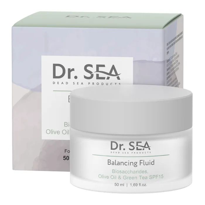 Крем для обличчя Dr. Sea Balancing Fluid З комплексом біосахаридів, оливою та зеленим чаєм та SPF15 50 мл (7293720020677)