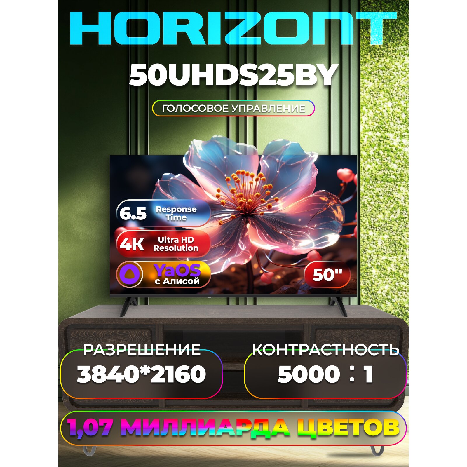 Телевизор Horizont 50UHDS25BY черный