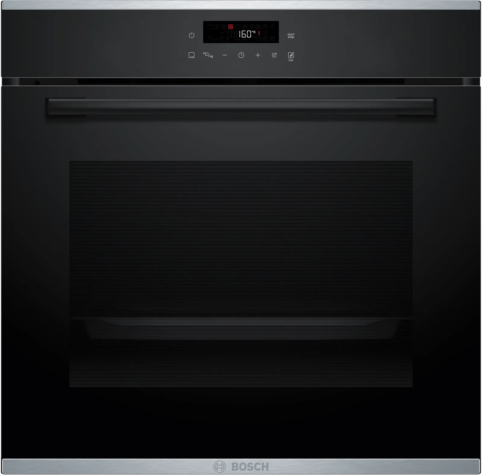 Serie 4,Встраиваемый духовой шкаф Bosch, Auto Pilot 10, объем 71 л , 7 режимов нагрева, 4D Hotair, телескопические направляющие 1уровень,пиролиз, сенсорное управление,цвет черный+профиль из нержавеющей стали