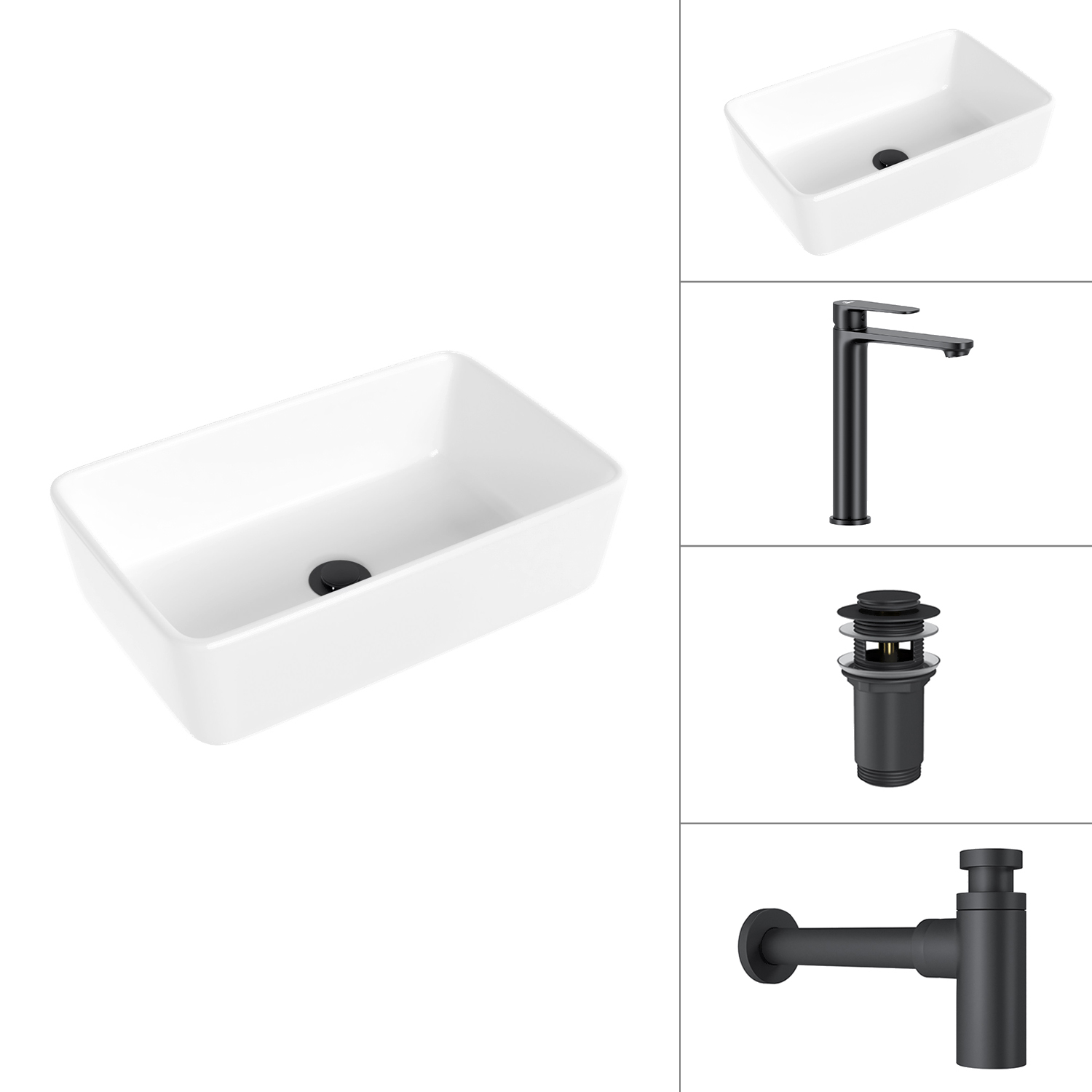 Умывальник со смесителем Lauter 21674A + Moon 21СК8691BS + сифон 21635B + дон.клапан 21190B (черный матовый)