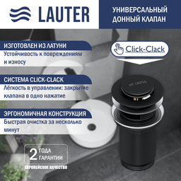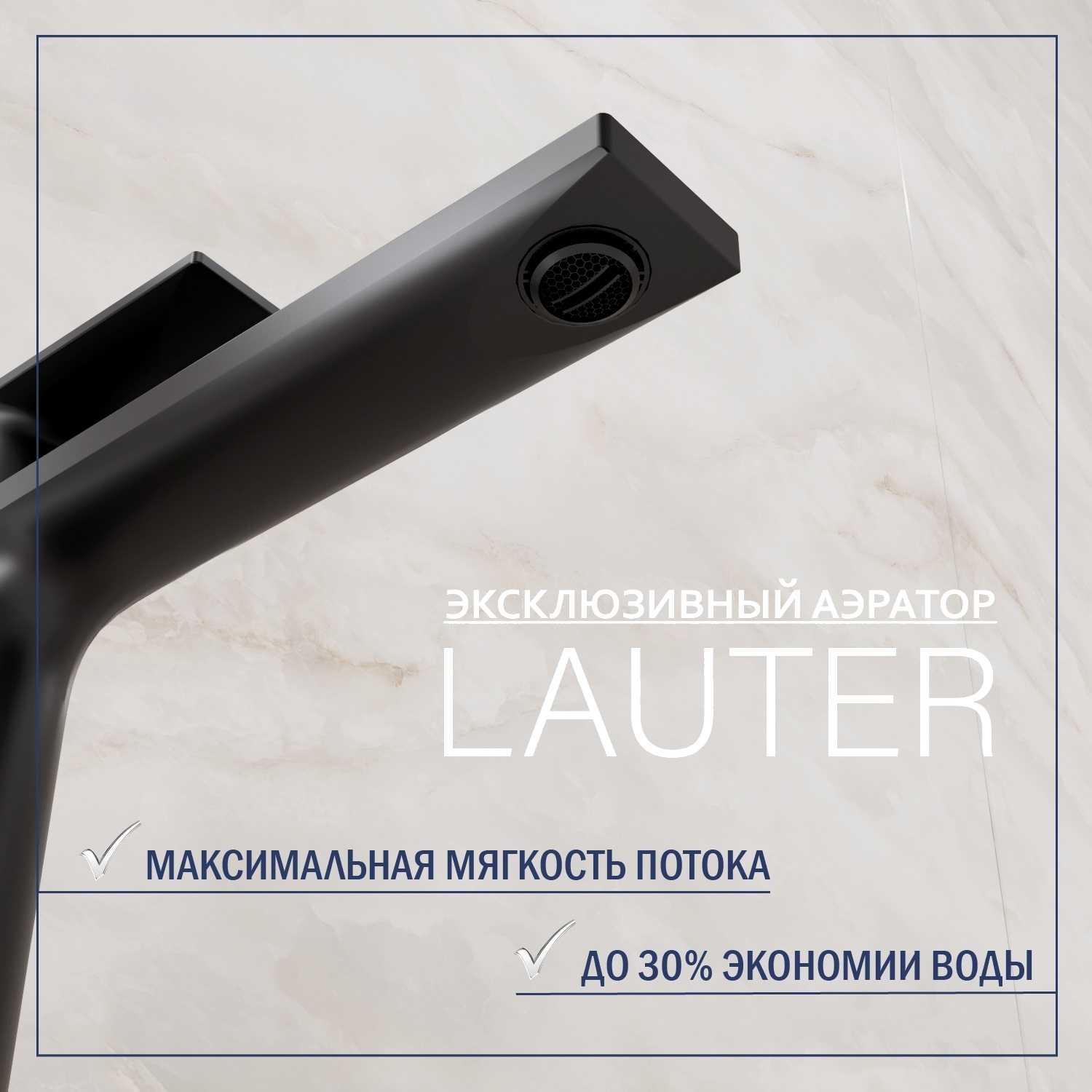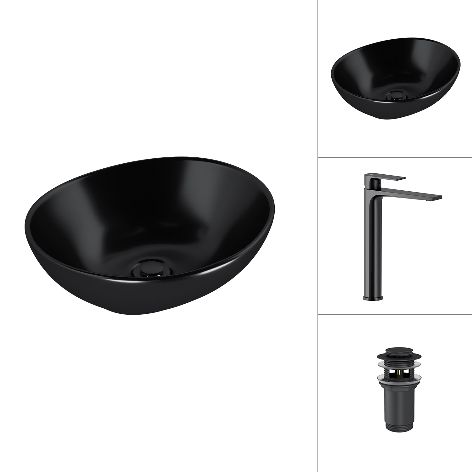 Умывальник со смесителем Lauter 21652-A + Reef 21CK8678BS с донным клапаном 21190B (черный матовый)