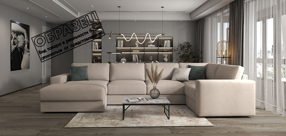 Диван П-образный Rivalli Дискавери + оттоманка правая + угловая секция + кресло секц. (Katrin beige)