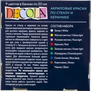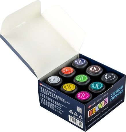 ✅ Акриловые краски по стеклу и керамике серии Decola идеально подходят для росписи изделий из стекла, фарфора, керамики и фаянса. Эти краски также можно использовать на полистироле, оргстекле и других пластиках, что делает их универсальным инструментом для творчества.✅ Благодаря отличной смешиваемости, вы сможете создавать уникальные оттенки, сохраняя при этом яркость и чистоту цветов. Краски обладают светостойкостью и устойчивостью к воде, что позволяет использовать их как для декоративных, так и для функциональных целей.✅ Удобные банки в наборах оснащены стикерами на крышках, что облегчает выбор нужного цвета и типа краски. Не требуется обязательная фиксация обжигом, что делает процесс работы с ними еще более простым и доступным.⚠️ Храните краски в температурном диапазоне от +5 до +35 °С, чтобы обеспечить их долговечность и качество. Состав набора включает: белую, желтую светлую, розовую светлую, красную, зеленую светлую, изумрудную, синюю темную, коричневую и черную краски.✅ Акриловые краски по стеклу и керамике серии Decola идеально подходят для росписи изделий из стекла, фарфора, керамики и фаянса. Эти краски также можно использовать на полистироле, оргстекле и других пластиках, что делает их универсальным инструментом для творчества.✅ Благодаря отличной смешиваемости, вы сможете создавать уникальные оттенки, сохраняя при этом яркость и чистоту цветов. Краски обладают светостойкостью и устойчивостью к воде, что позволяет использовать их как для декоративных, так и для функциональных целей.✅ Удобные банки в наборах оснащены стикерами на крышках, что облегчает выбор нужного цвета и типа краски. Не требуется обязательная фиксация обжигом, что делает процесс работы с ними еще более простым и доступным.⚠️ Храните краски в температурном диапазоне от +5 до +35 °С, чтобы обеспечить их долговечность и качество. Состав набора включает: белую, желтую светлую, розовую светлую, красную, зеленую светлую, изумрудную, синюю темную, коричневую и черную краски.