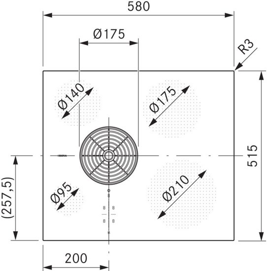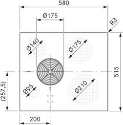 - Подробная информация о конфорках Задняя левая конфорка - Ø 140 мм, мощность 900 Вт, с увеличением до 1350 Вт; задняя правая - Ø 175 мм, мощность 1400 Вт, с увеличением до 2100 Вт; передняя левая - Ø 95 мм, мощность 400 Вт, с увеличением до 600 Вт; передняя правая - Ø 210 мм, мощность 2300 Вт, с увеличением до 3000 Вт.