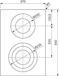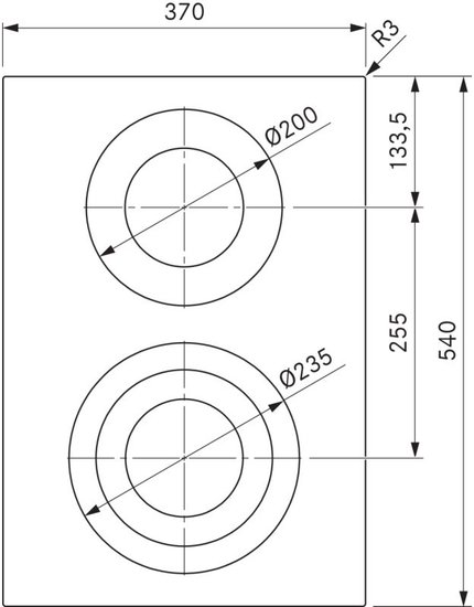- Подробная информация о конфорках Задняя конфорка диаметром 120/200 мм, мощность 800/1900 Вт, 2 контура; передняя конфорка диаметром 120/180/235 мм, мощность 800/1600/2500 Вт, 3 контура