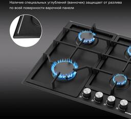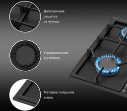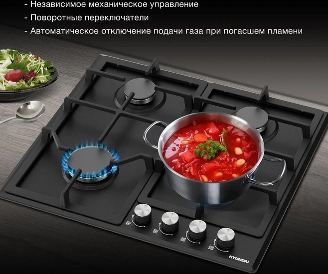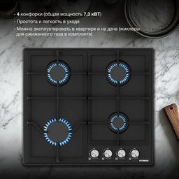 ✅Ключевые характеристикиВстраиваемая газовая варочная панель с четырьмя конфорками, механическим управлением и эмалированной рабочей поверхностью оптимально подойдет для семей и тех, кто ценит экономичное и быстрое приготовление пищи. Габариты панели составляют 58x52x10 см, что делает ее удобной для установки в стандартные кухонные столешницы.✅Преимущества и отличияМодель оснащена функцией автоматического электроподжига в ручке и системой газ-контроля, обеспечивающей дополнительную безопасность при эксплуатации. Чугунные решетки гарантируют устойчивость посуды и долгий срок службы, а черное исполнение корпуса легко впишется в современный кухонный интерьер.✅ПрактичностьПанель отличается простотой ухода благодаря гладкой эмалированной поверхности, а фронтальное расположение органов управления обеспечивает удобный доступ при готовке. Универсальность варочной панели позволяет установить ее практически в любой кухне без необходимости подгонки нестандартных размеров.✅УникальностьОсобенностью данной модели является сочетание автоматического электроподжига и системы газ-контроля, которые обычно встречаются в более дорогих сегментах. Чугунные решетки и эргономичная конструкция панели делают ее надежным и практичным решением для ежедневного использования.✅Ключевые характеристикиВстраиваемая газовая варочная панель с четырьмя конфорками, механическим управлением и эмалированной рабочей поверхностью оптимально подойдет для семей и тех, кто ценит экономичное и быстрое приготовление пищи. Габариты панели составляют 58x52x10 см, что делает ее удобной для установки в стандартные кухонные столешницы.✅Преимущества и отличияМодель оснащена функцией автоматического электроподжига в ручке и системой газ-контроля, обеспечивающей дополнительную безопасность при эксплуатации. Чугунные решетки гарантируют устойчивость посуды и долгий срок службы, а черное исполнение корпуса легко впишется в современный кухонный интерьер.✅ПрактичностьПанель отличается простотой ухода благодаря гладкой эмалированной поверхности, а фронтальное расположение органов управления обеспечивает удобный доступ при готовке. Универсальность варочной панели позволяет установить ее практически в любой кухне без необходимости подгонки нестандартных размеров.✅УникальностьОсобенностью данной модели является сочетание автоматического электроподжига и системы газ-контроля, которые обычно встречаются в более дорогих сегментах. Чугунные решетки и эргономичная конструкция панели делают ее надежным и практичным решением для ежедневного использования.