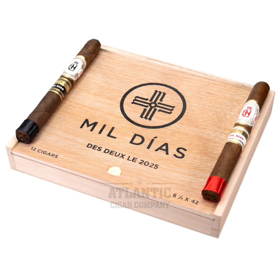 The highly anticipated Mil Días Des Deux LE 2025 continues Crowned Heads’ legacy of balance, finesse, and flavor evolution. This limited edition 6-1/8 x 42 corona-sized cigar refines the original Mil Días blends with even greater precision and complexity. This mixed box comes with 6 Connecticut Maduro and 6 Ecuadorian Habano sticks.