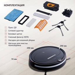 • Другие насадки и принадлежности пульт ДУ сетевой адаптер боковые щетки -4 шт. сменный фильтр HEPA насадка для влажной уборки- 2 шт. щеточка для очистки пылесборника