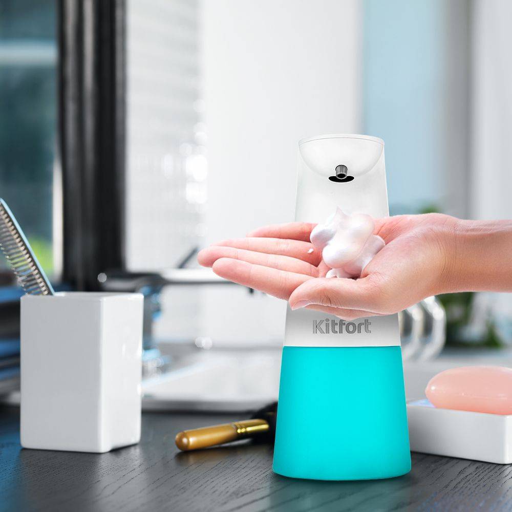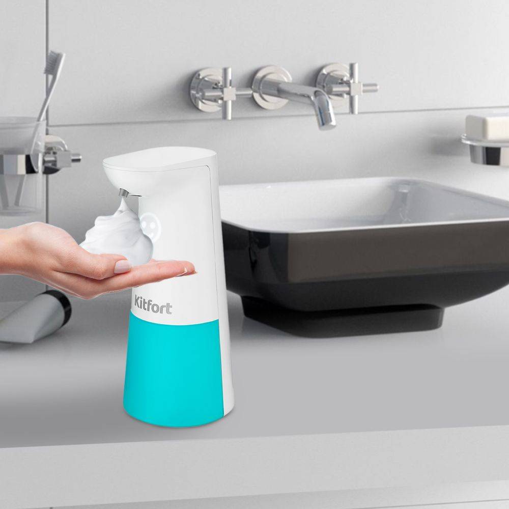 ОсобенностиДиспенсер автоматически подаёт мыльную пену при срабатывании инфракрасного датчика, реагирующего на приближение. При поднесении к нему руки на расстоянии до 5 см, сенсор выдаст порцию взбитой пены. Диспенсер оснащен двумя режимами подачи пены: стандартный и экономный.